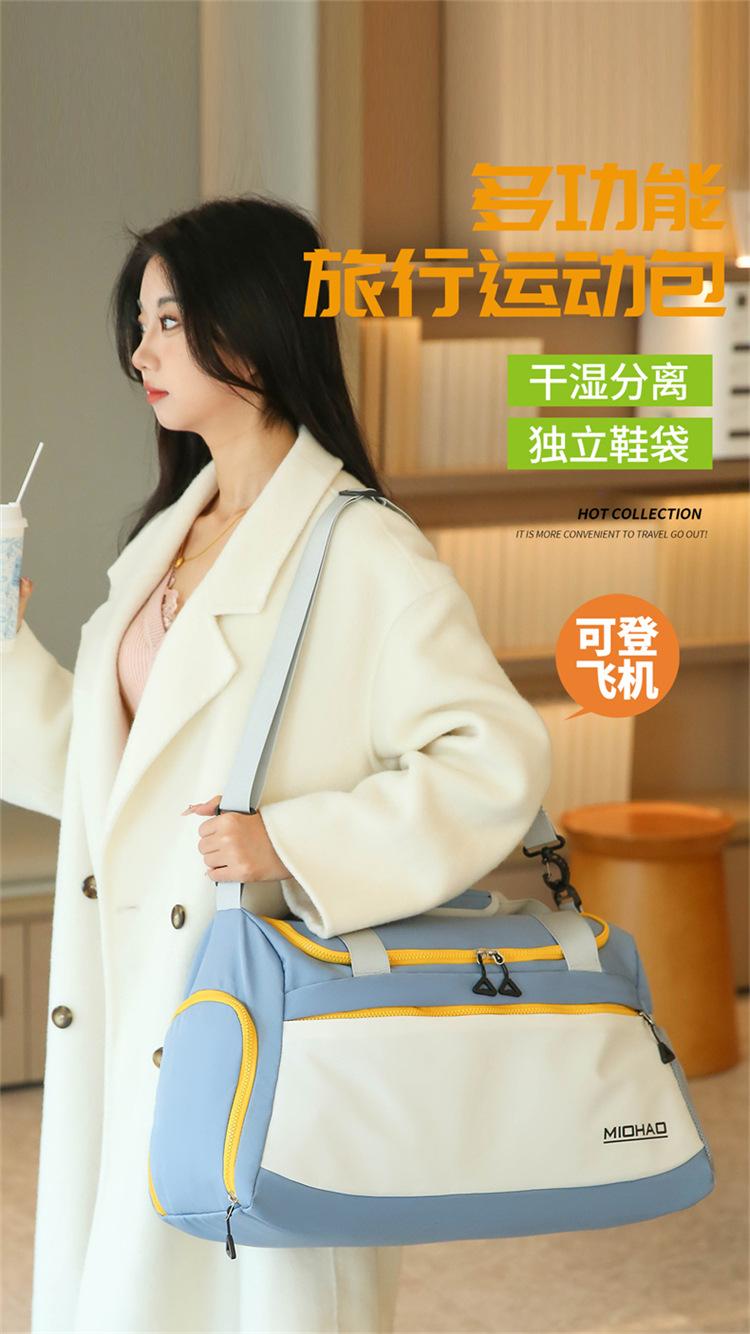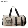 Bolsa de yoga portátil con logotipo para mujer, gran capacidad, para viajes separados, seca y húmeda, bolsa de fitness para distancias cortas, almacén de zapatos independiente