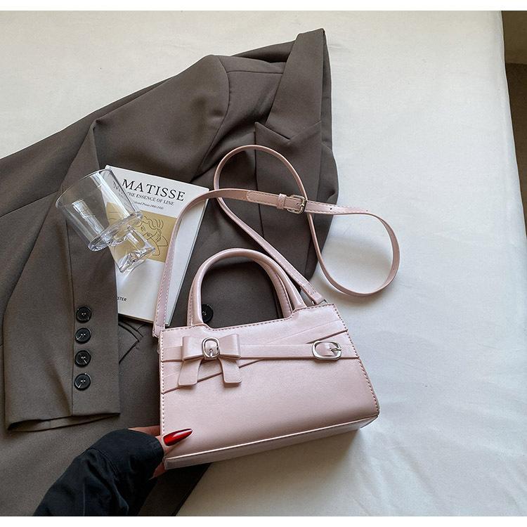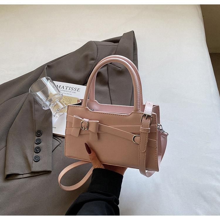 2025 Nuevo Bolso Cuadrado Pequeño con Lazo Estilo Nicho Coreano Simple Popular Bolso de Hombro Axilar Bolso de Mano Retro a la Moda