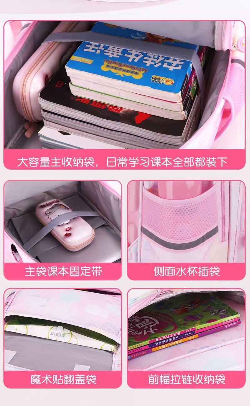 Mochilas escolares para estudiantes de primaria, Mochilas ligeras de gran capacidad con dibujos animados para niñas en los grados 1-3-6, Venta al por mayor