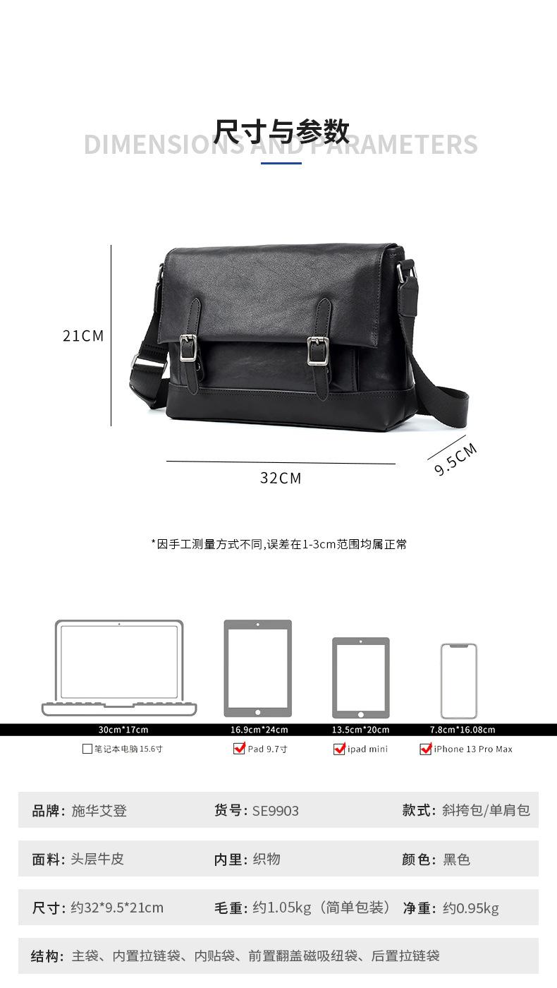 Nuevo bolso de cuero genuino para hombre, moderno y casual, bolso de hombro para hombre, moderno y de gran capacidad, bolso cruzado de piel de vaca de capa superior para hombre.