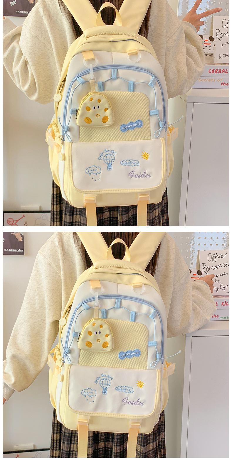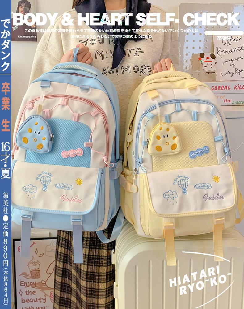 Bonita mochila de gran capacidad con contraste de colores y gran valor de color, estilo universitario, para estudiantes de secundaria.