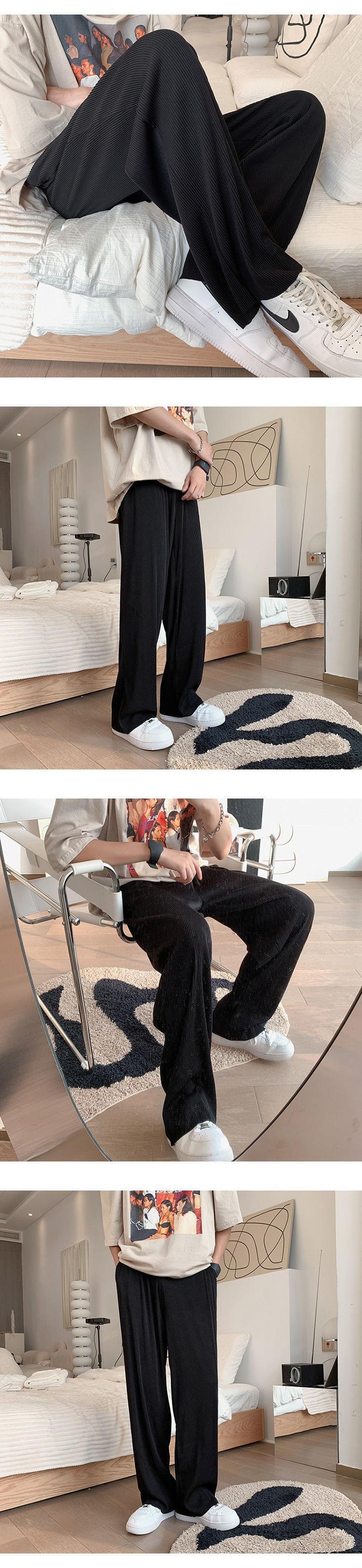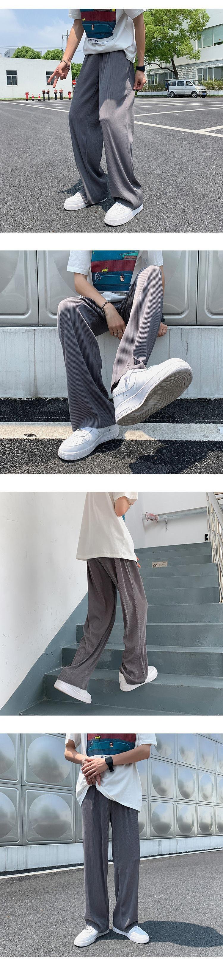 Pantalones casuales de verano para hombre, pantalones de pierna ancha a rayas finas, pantalones rectos sueltos de primavera y otoño para hombre, pantalones deportivos de moda