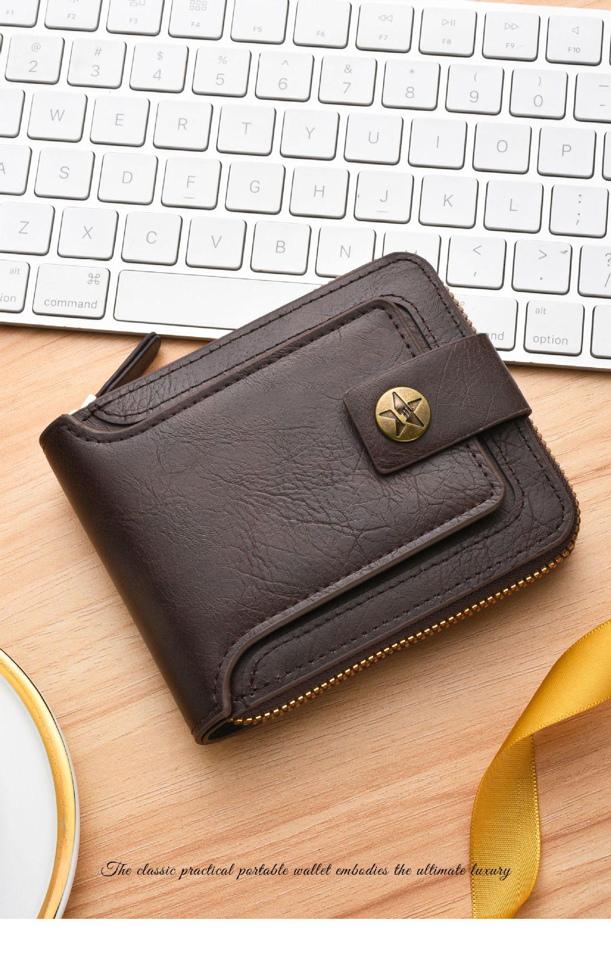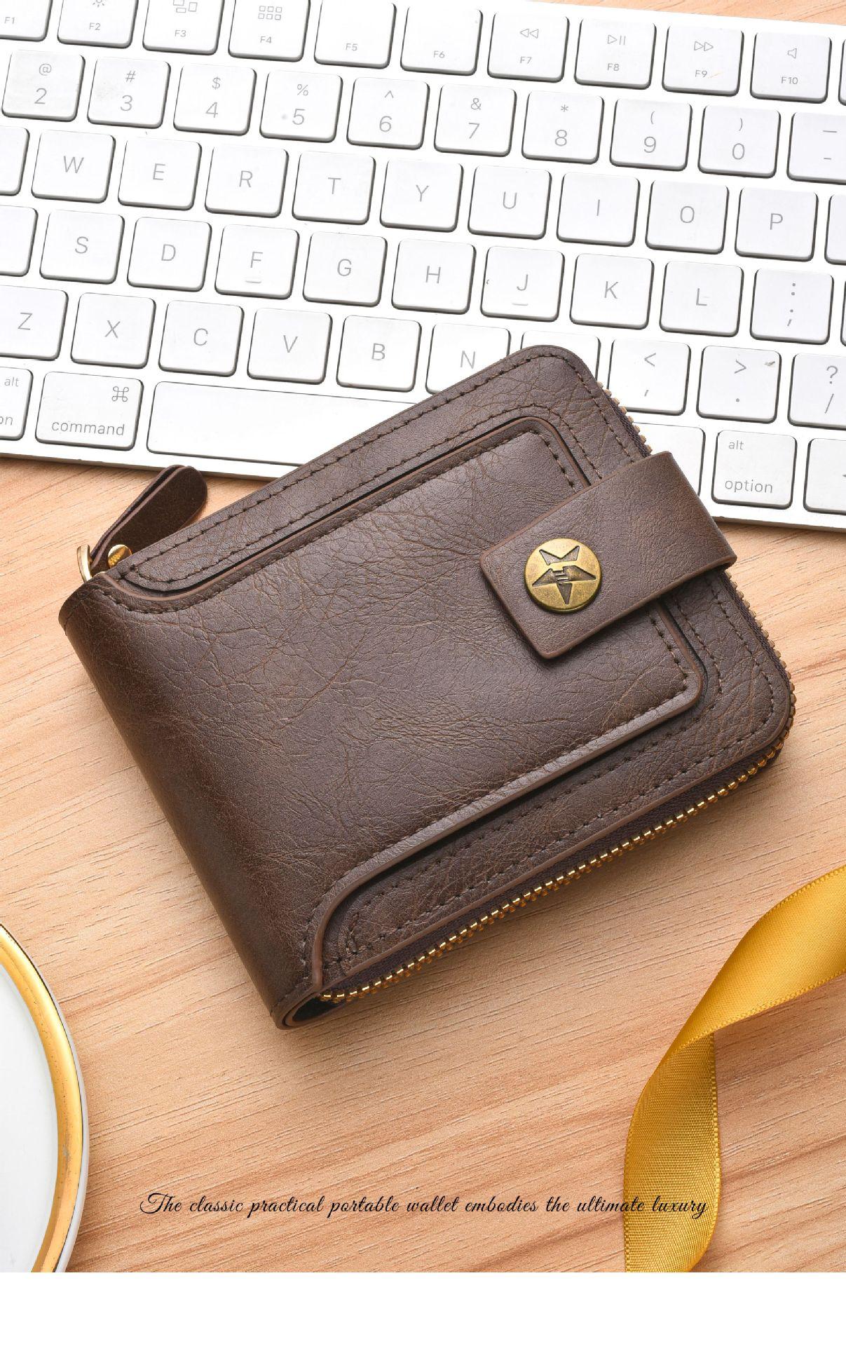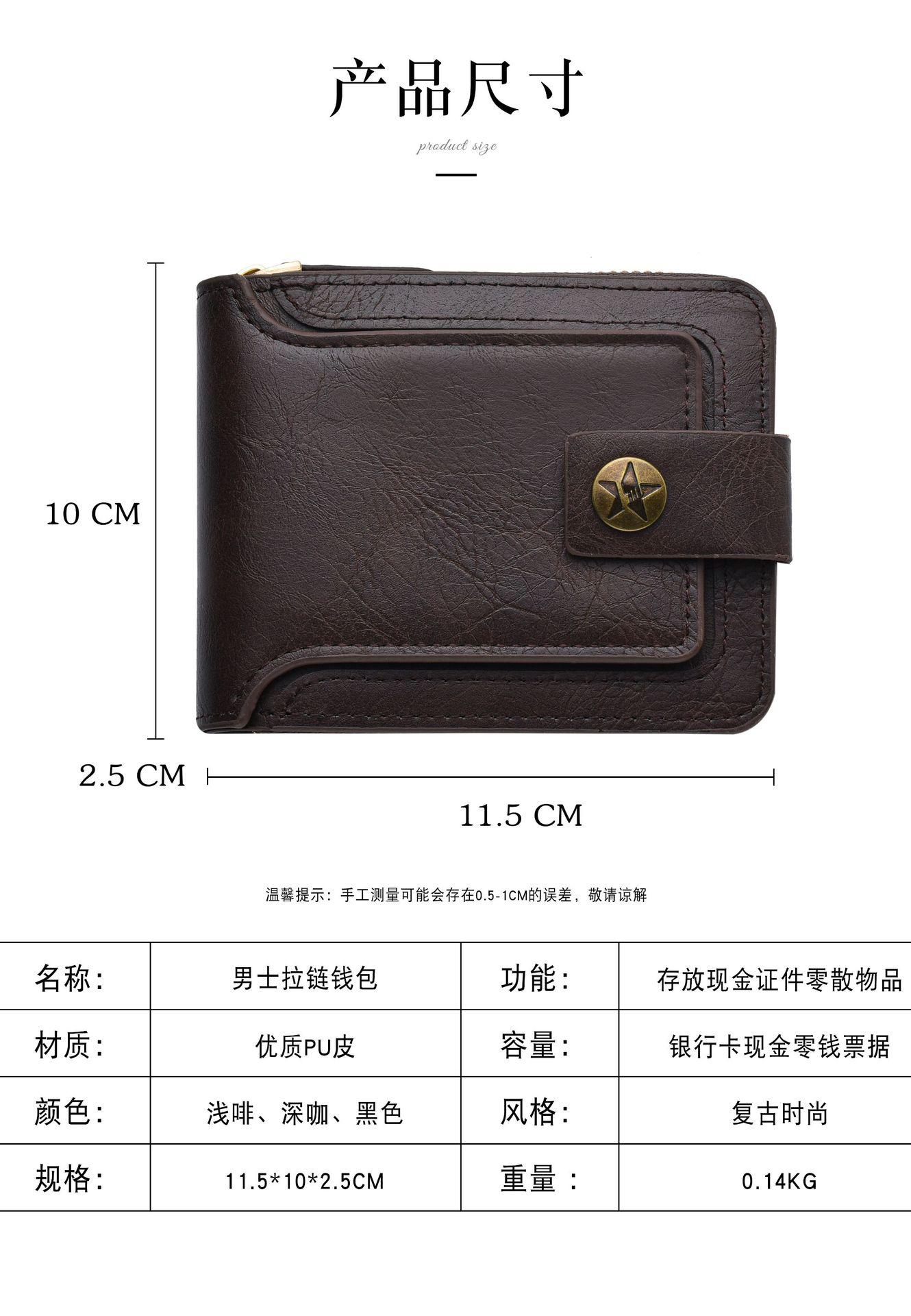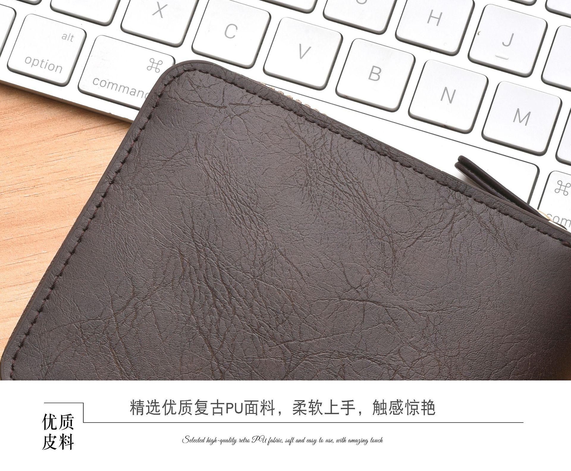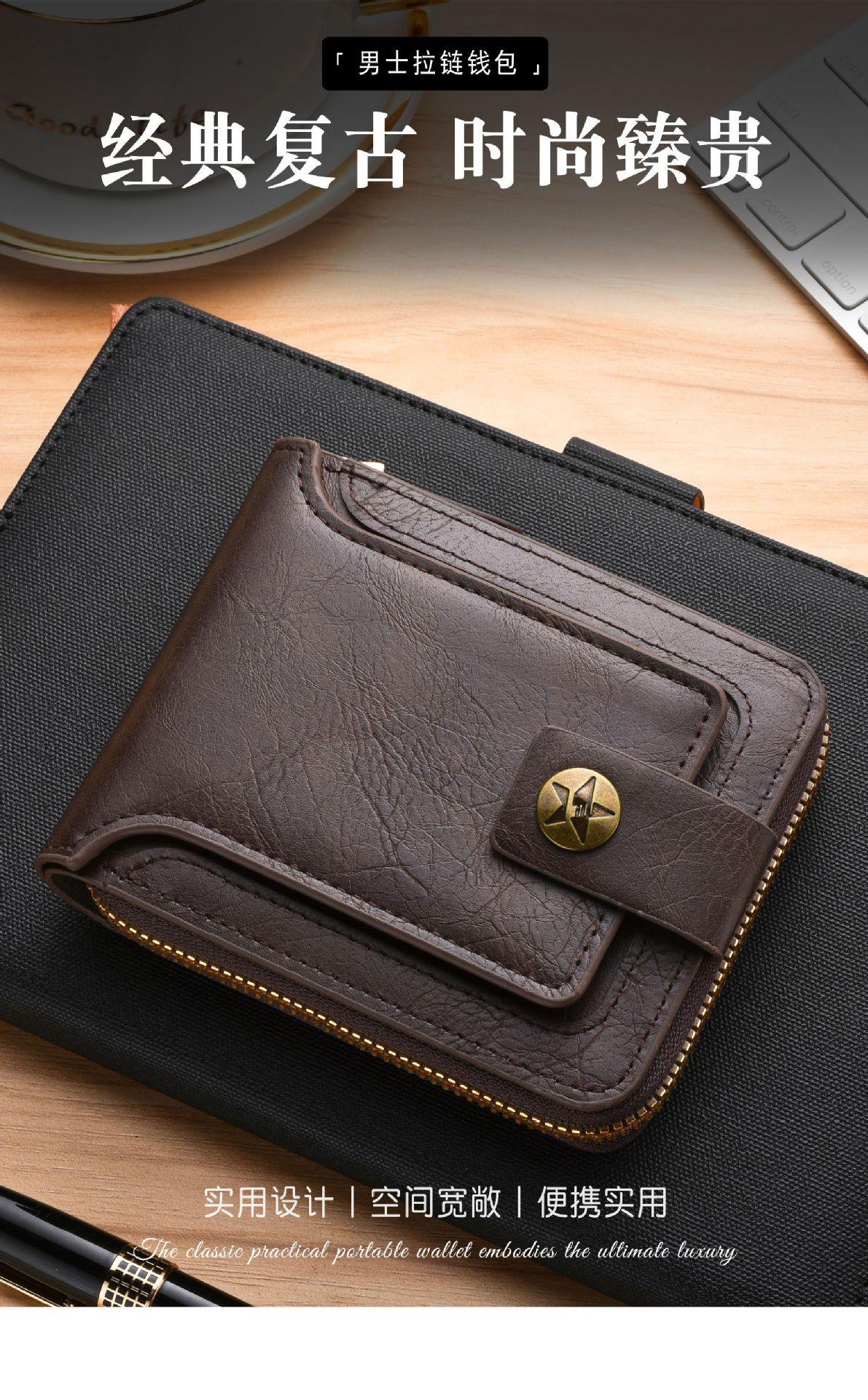 Billetera Corta para Hombre de Comercio Exterior Moda Europea y Americana Multifuncional Retro Horizontal Billetera Hebilla con Cremallera Tarjetero Venta al por Mayor