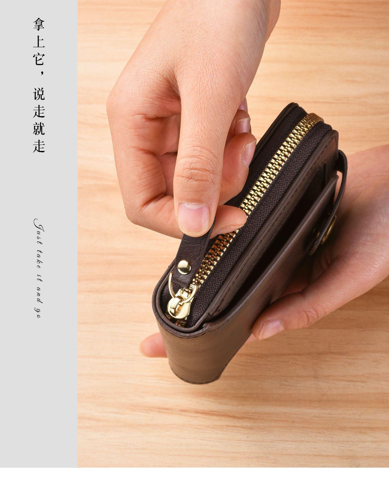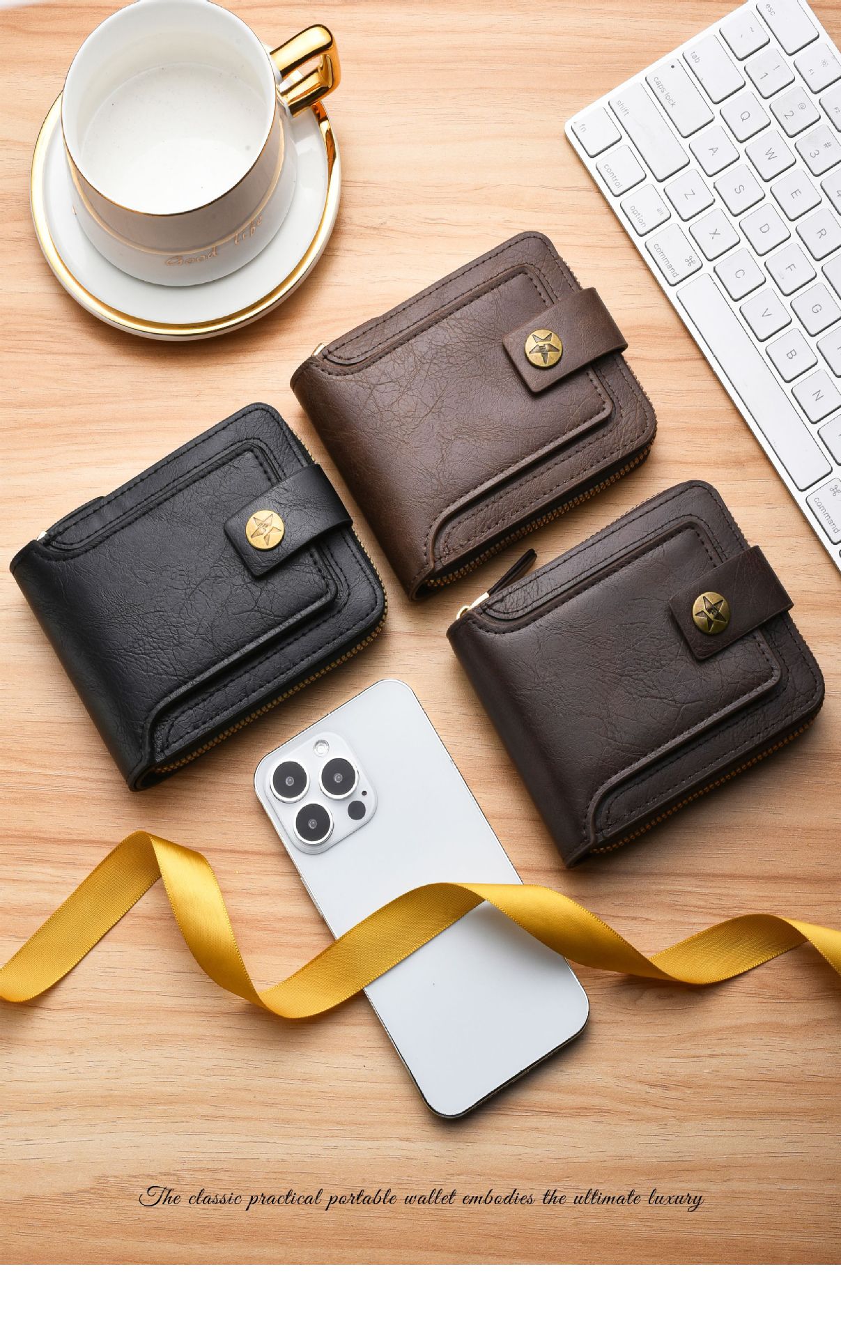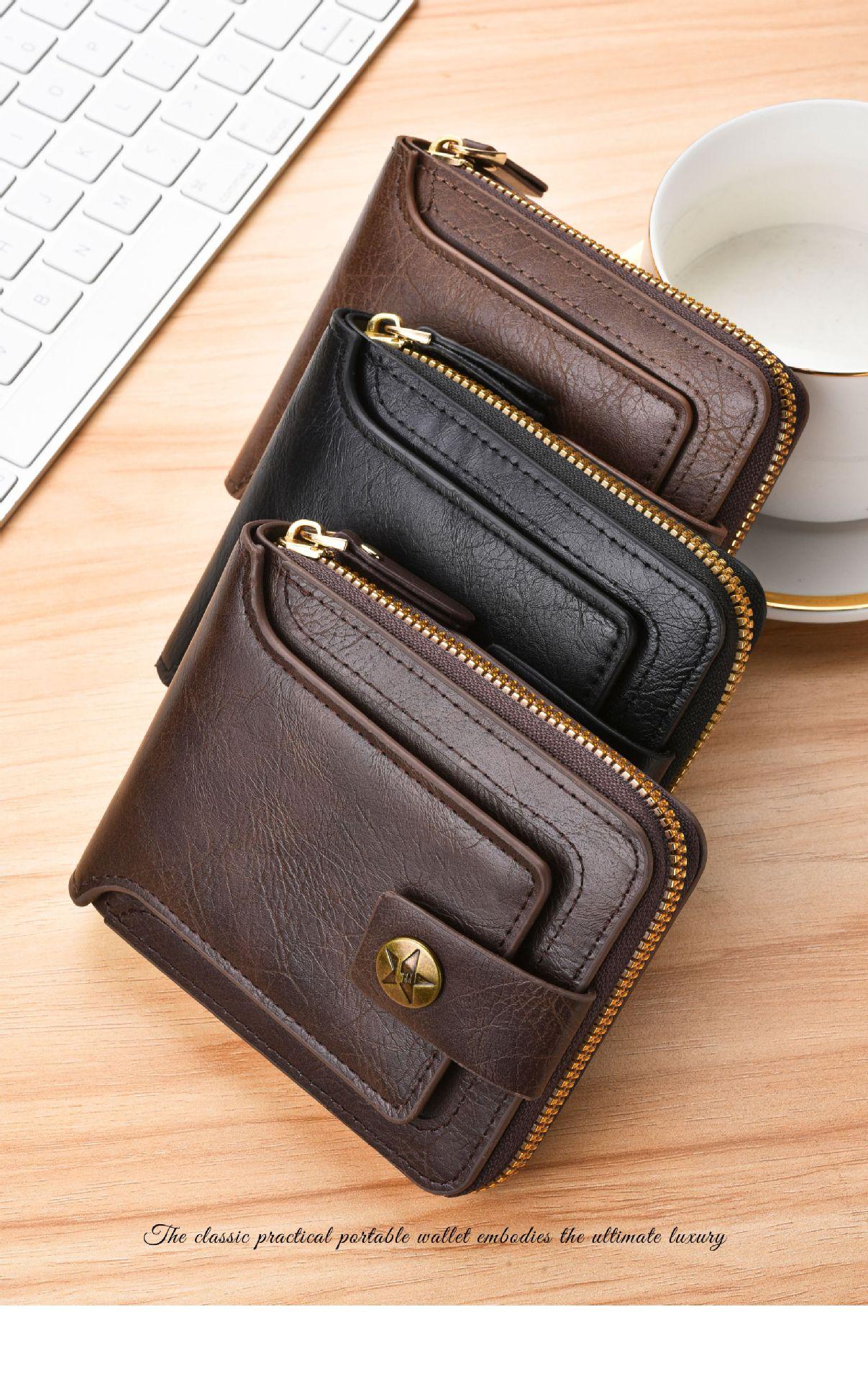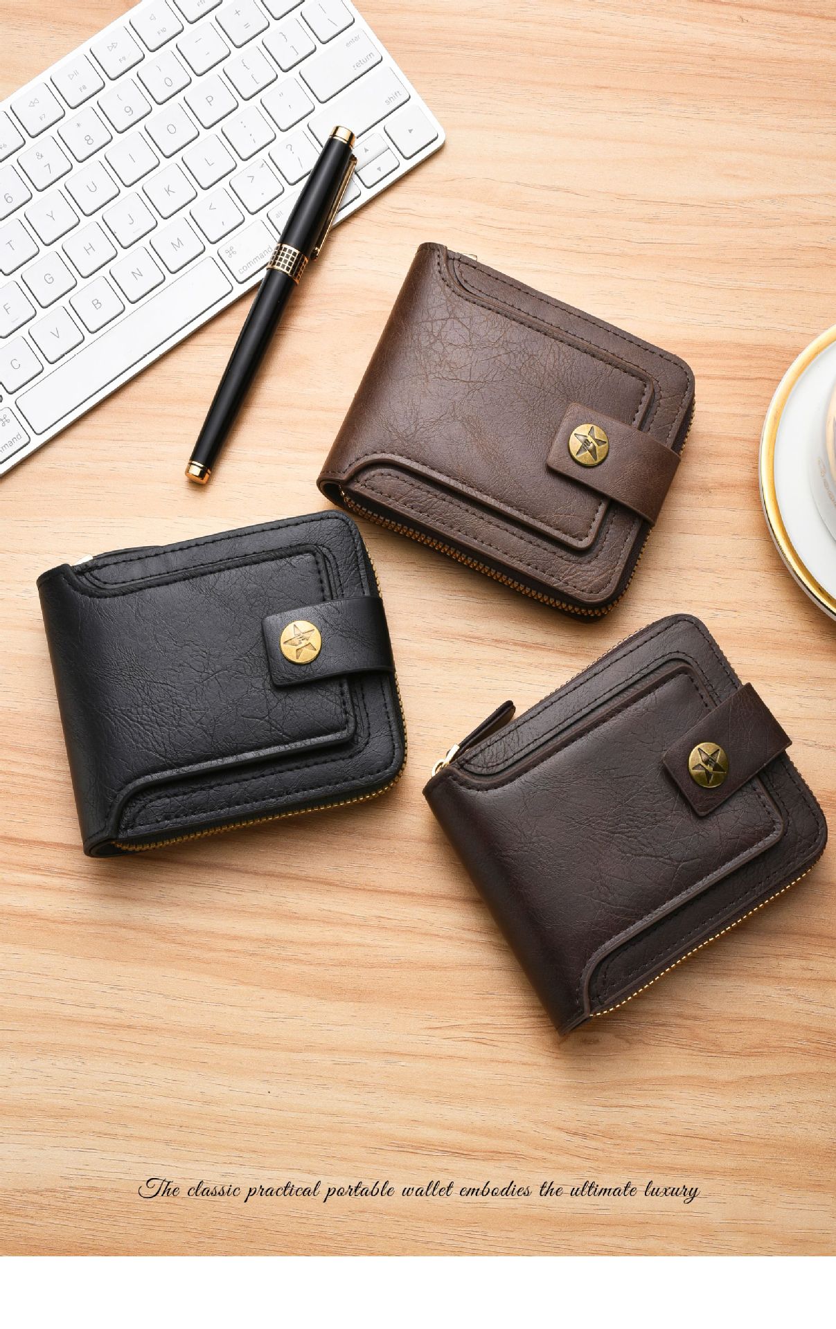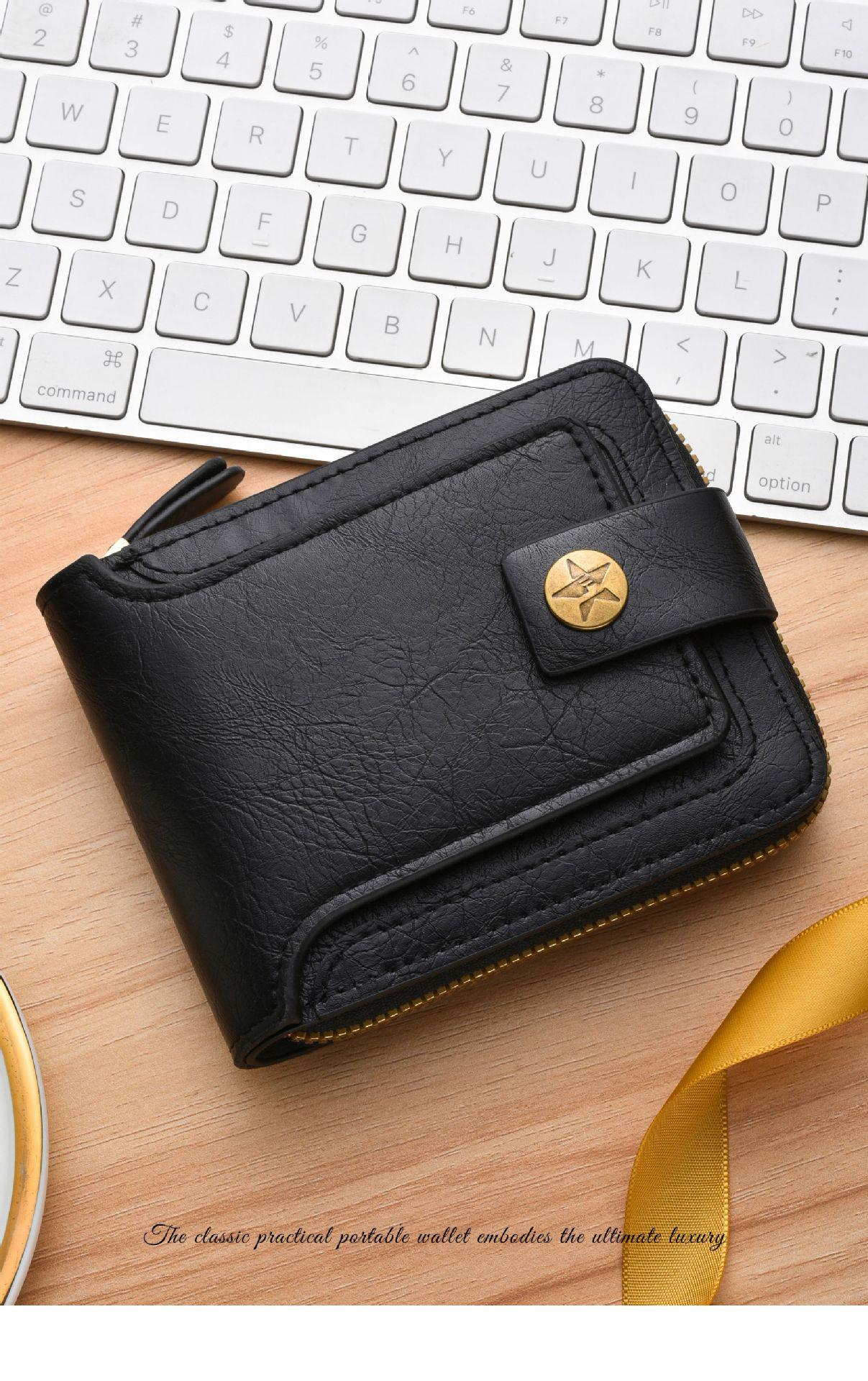 Billetera Corta para Hombre de Comercio Exterior Moda Europea y Americana Multifuncional Retro Horizontal Billetera Hebilla con Cremallera Tarjetero Venta al por Mayor