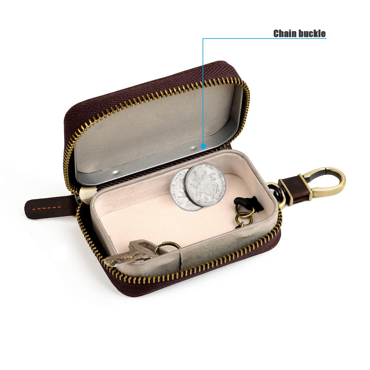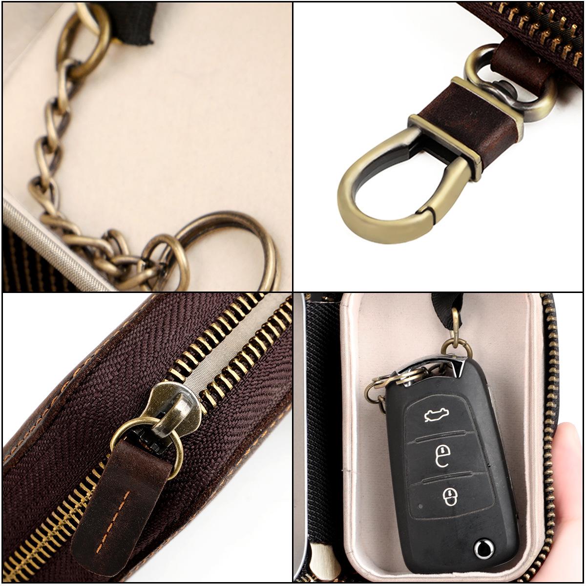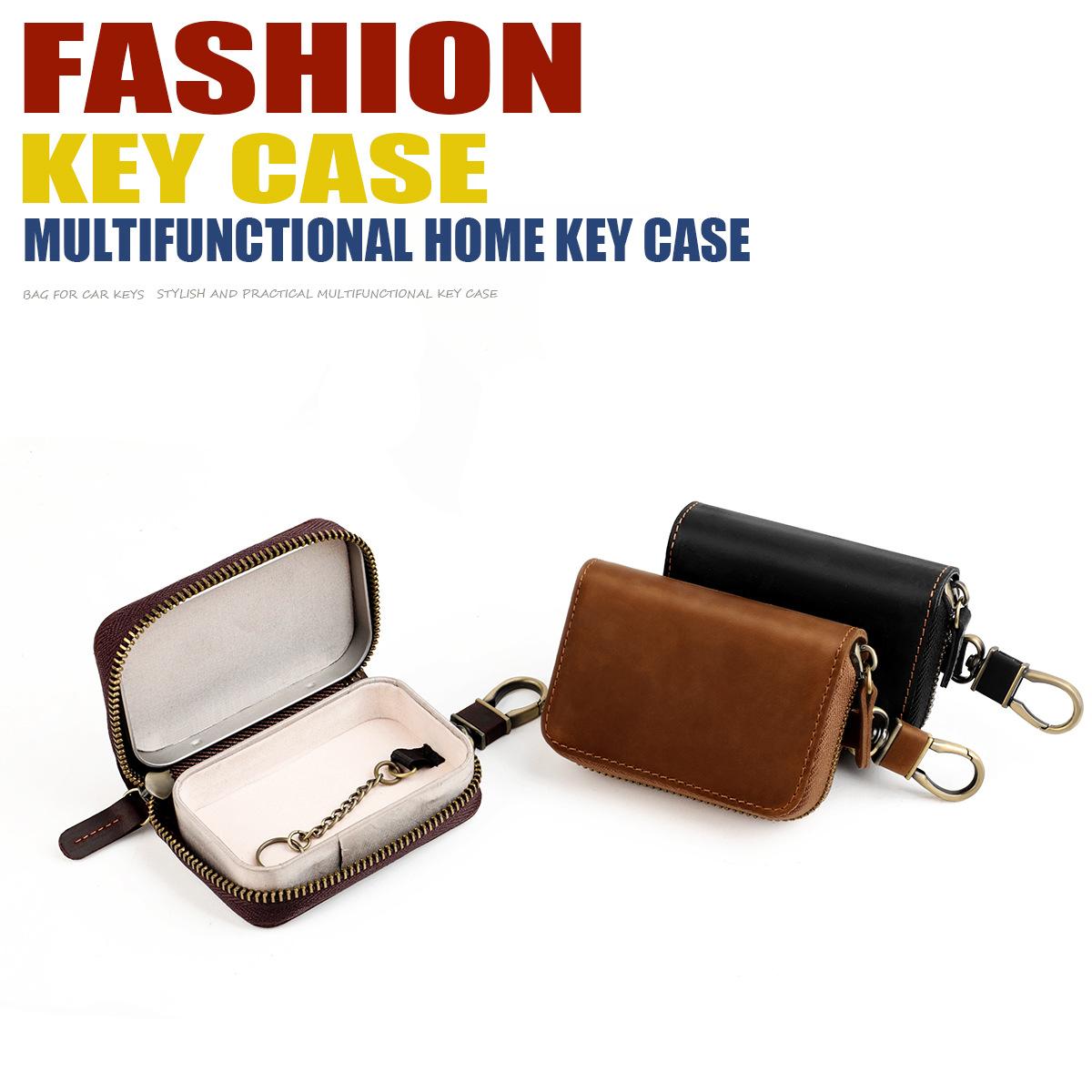 Cepillo antirrobo bolsa universal para llaves de coche cuero crazy horse creativa bolsa para llaves de coche monedero caja de almacenamiento caja de aluminio funda de cuero