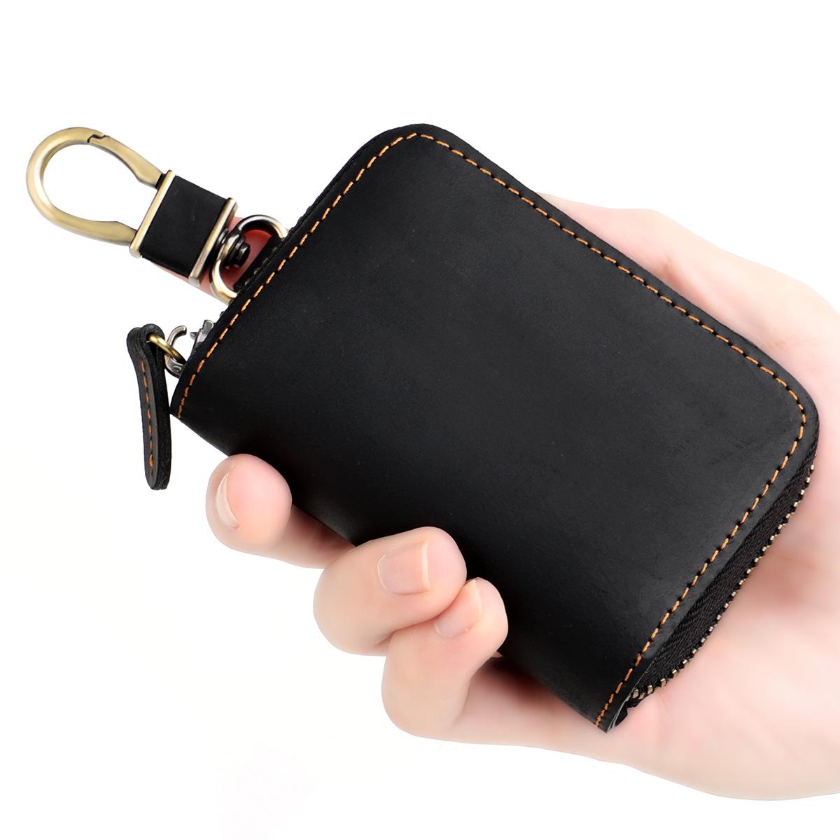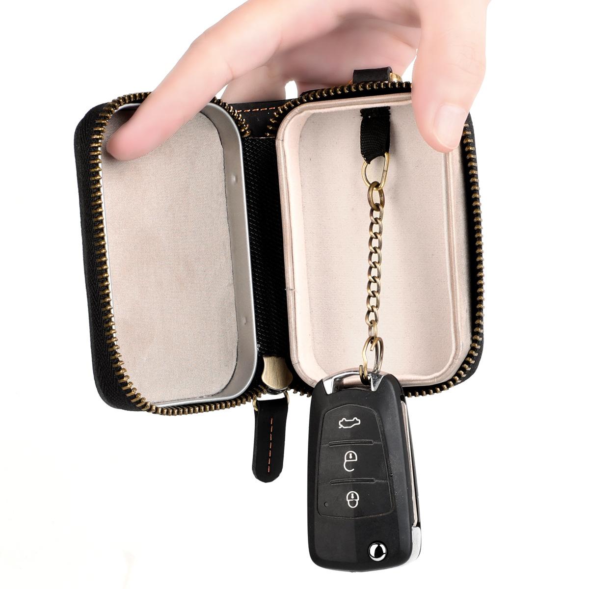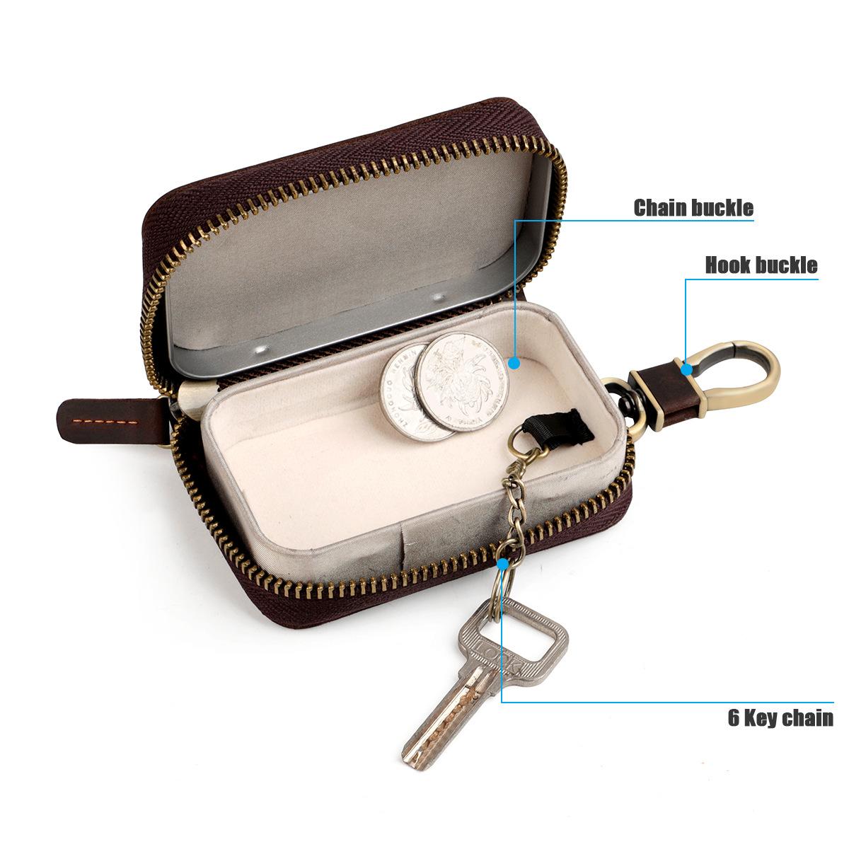 Cepillo antirrobo bolsa universal para llaves de coche cuero crazy horse creativa bolsa para llaves de coche monedero caja de almacenamiento caja de aluminio funda de cuero