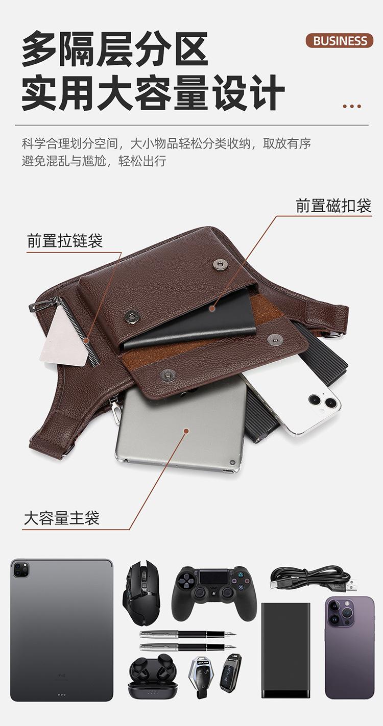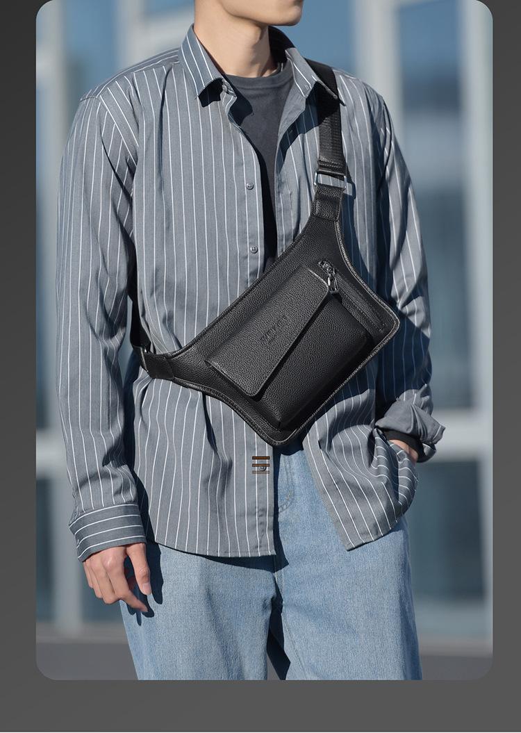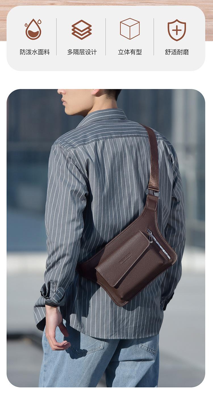 2025 Nueva Bolsa de Pecho Retro para Hombre de Gran Capacidad Impermeable Bandolera de Hombro Pu de Alta Gama Bolsa Deportiva Portátil