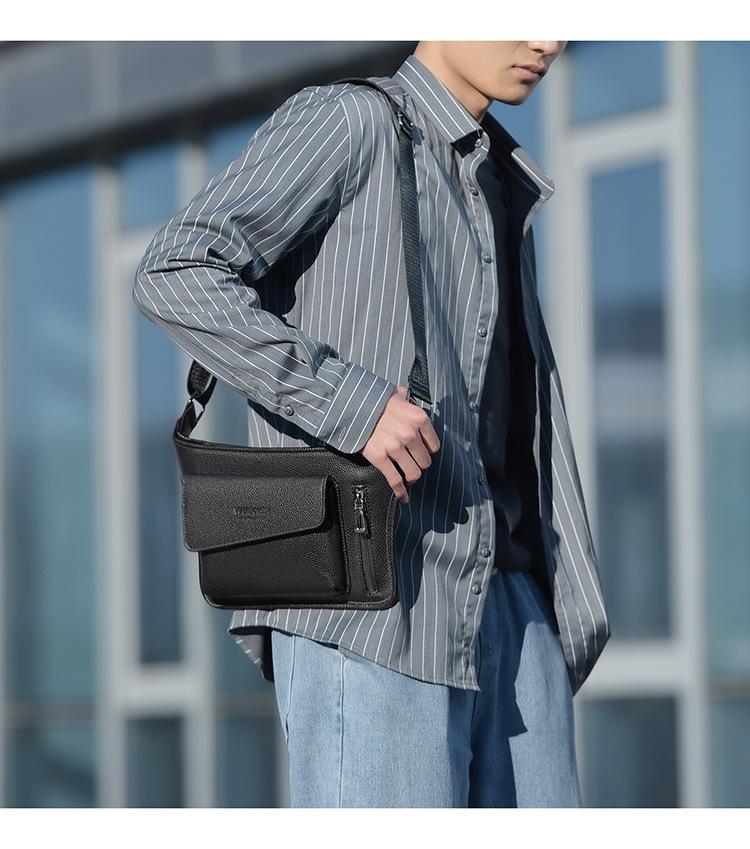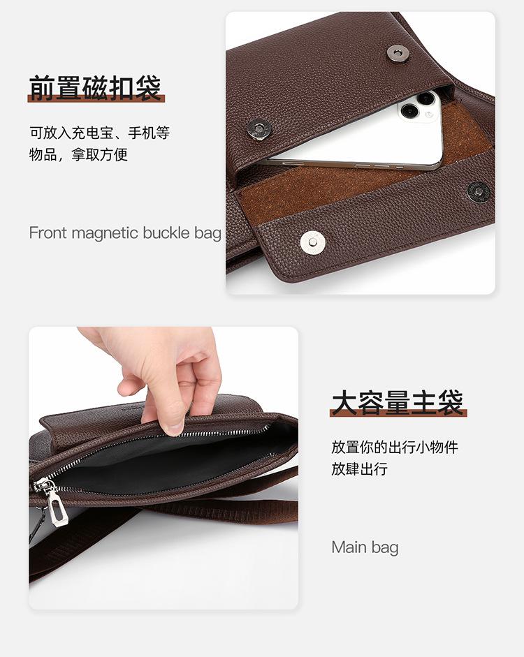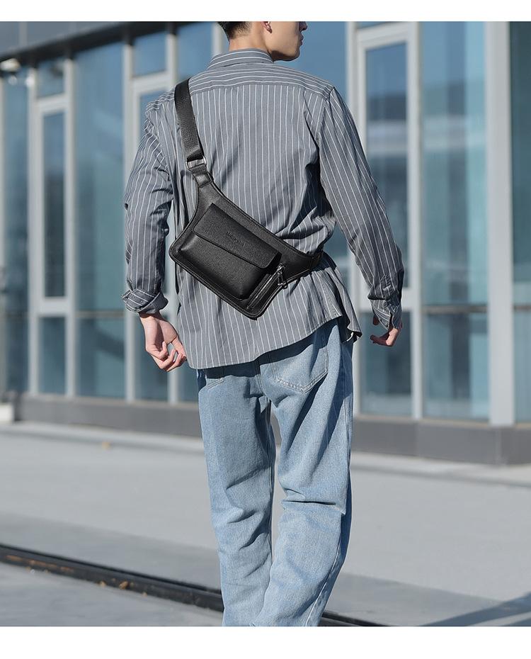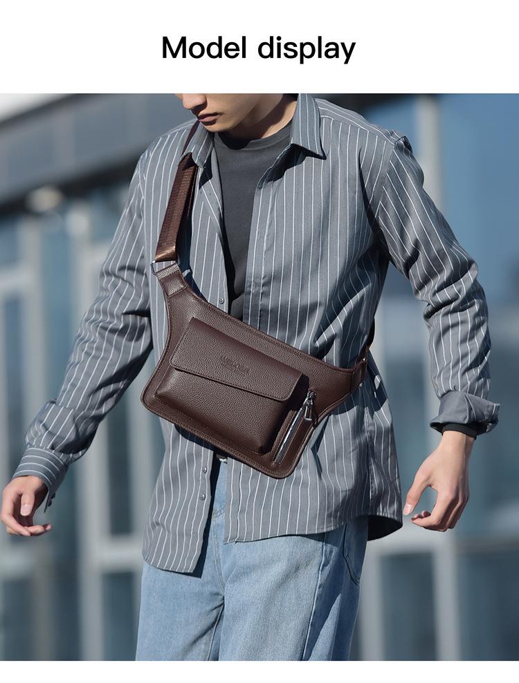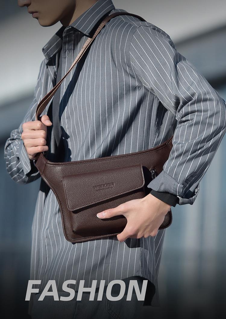 2025 Nueva Bolsa de Pecho Retro para Hombre de Gran Capacidad Impermeable Bandolera de Hombro Pu de Alta Gama Bolsa Deportiva Portátil