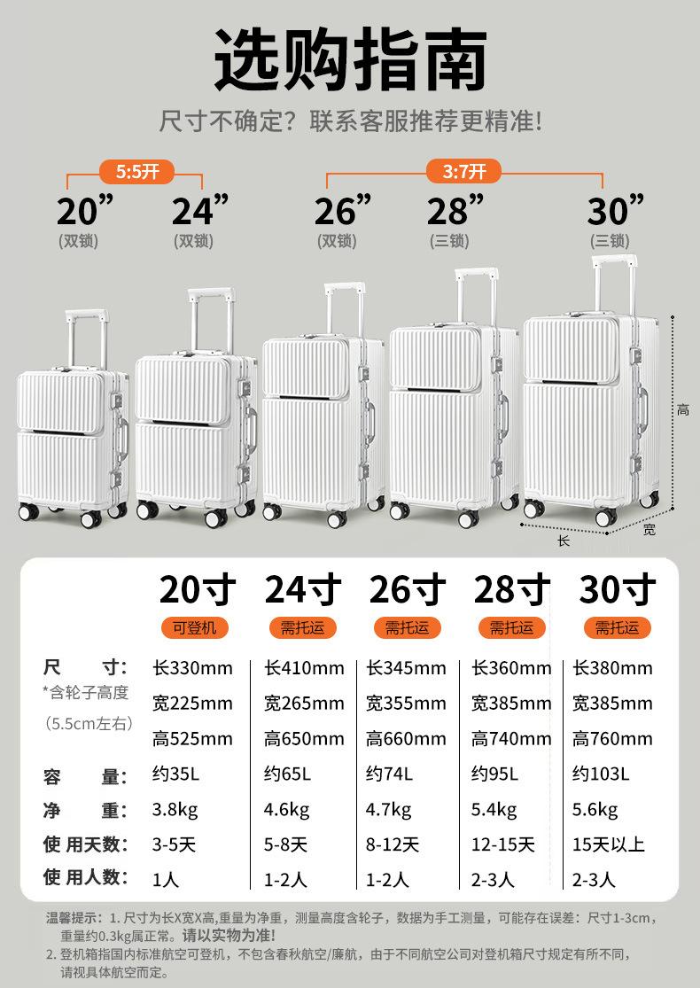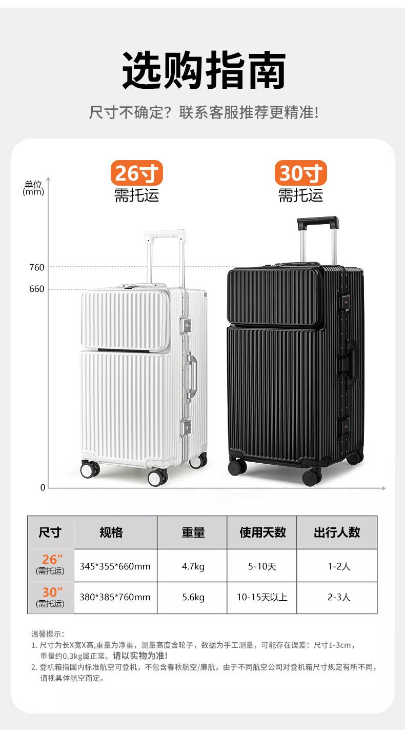Nueva maleta multifuncional de gran capacidad para estudiantes, maleta de 30 pulgadas, maleta de apertura frontal, una generación de cabello