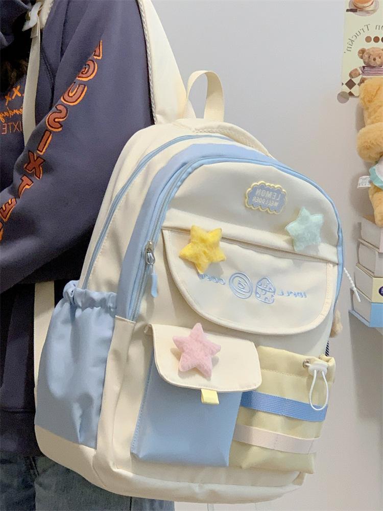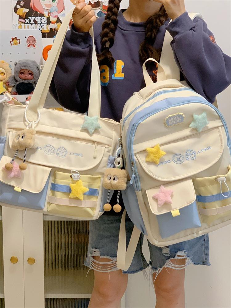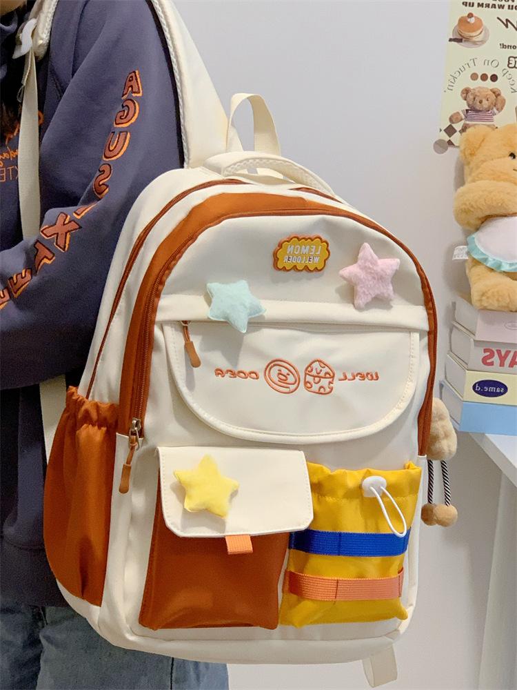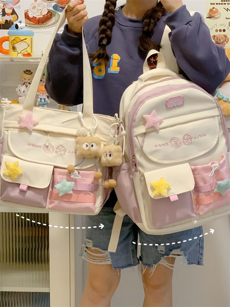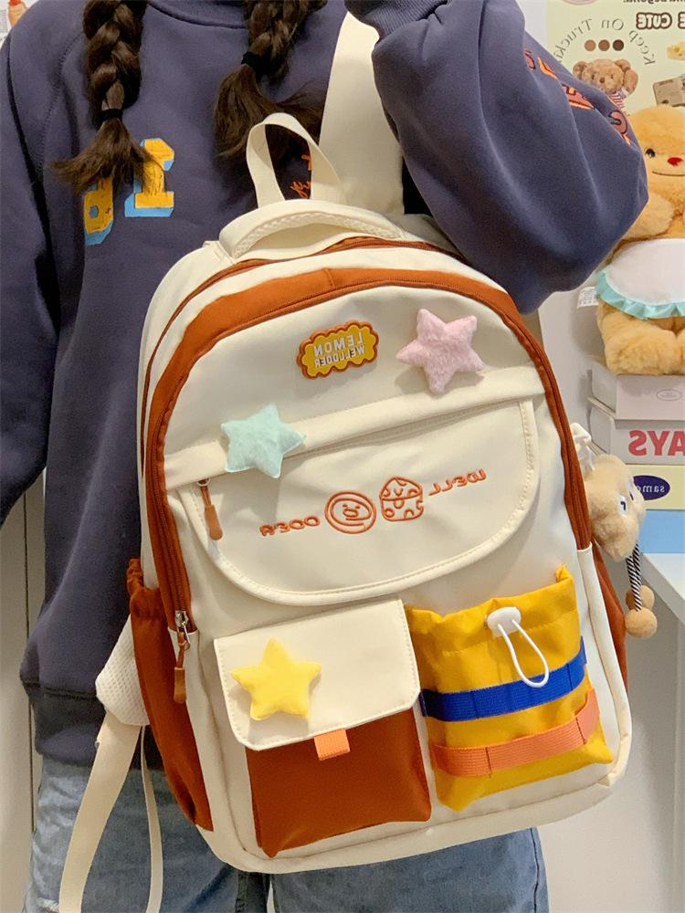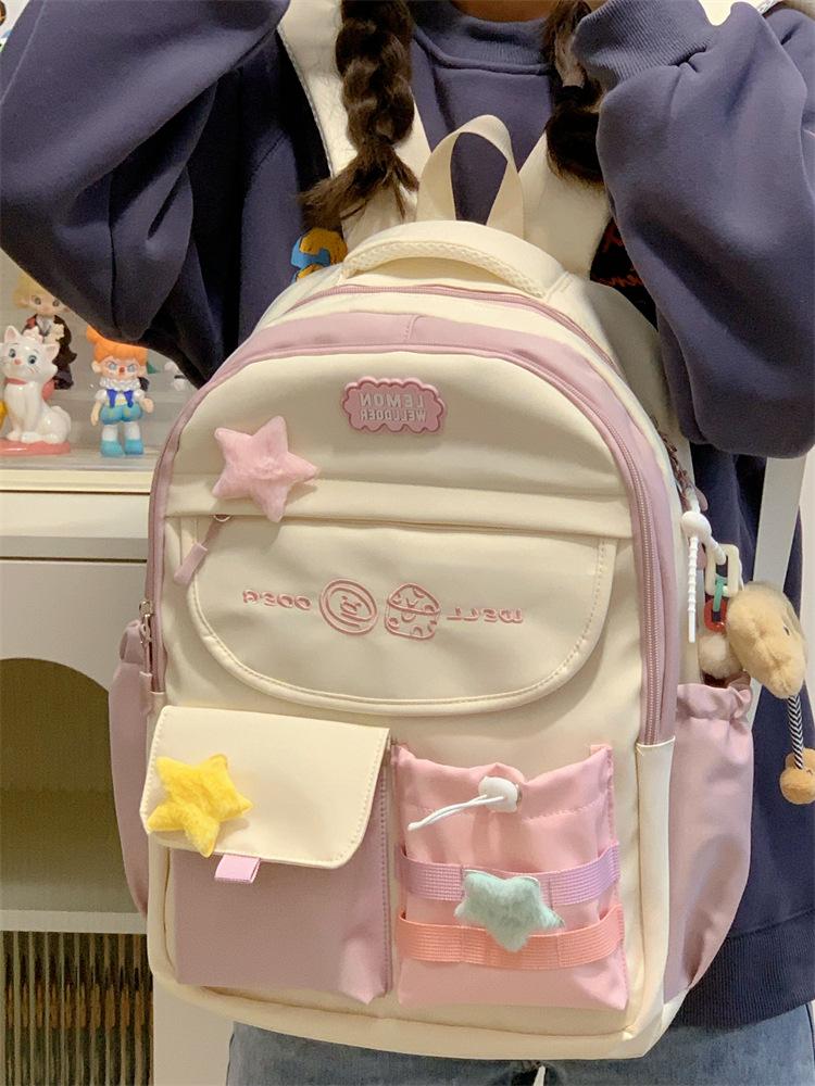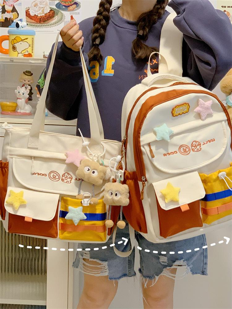 Mochila Estilo Dulce Japonés para Estudiante de Secundaria, Mochila a la Moda con Combinación de Colores, Bolso de Hombro para Estudiante, Mochila para Estudiante de Bachillerato