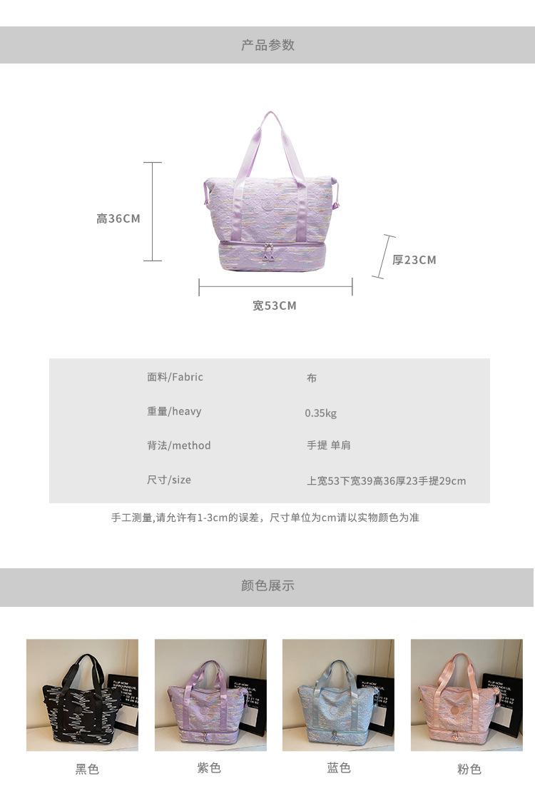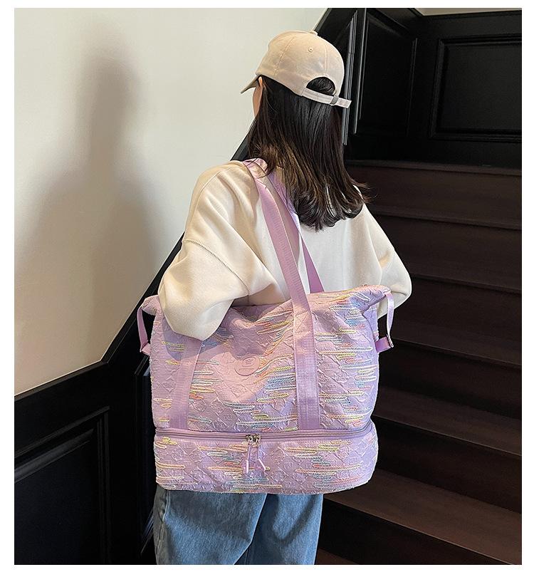 Bolsa de Viaje de Moda de Corta Distancia Ligera de Gran Capacidad Bolsa de Almacenamiento de Ropa Portátil para Viaje Separación Húmedo y Seco Bolsa de Yoga para Mujer