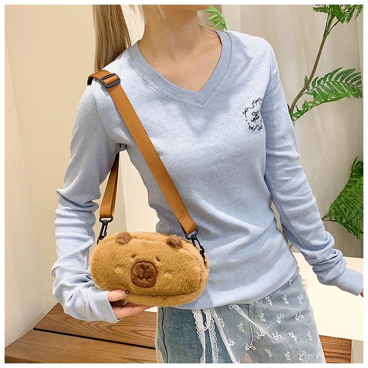2024 Nuevo Bolso de Hombro Kapi Bala Bolso de Felpa Estudiante Dibujos Animados Bolsa de Almacenamiento de Papelería Bolso Cruzado para Niña