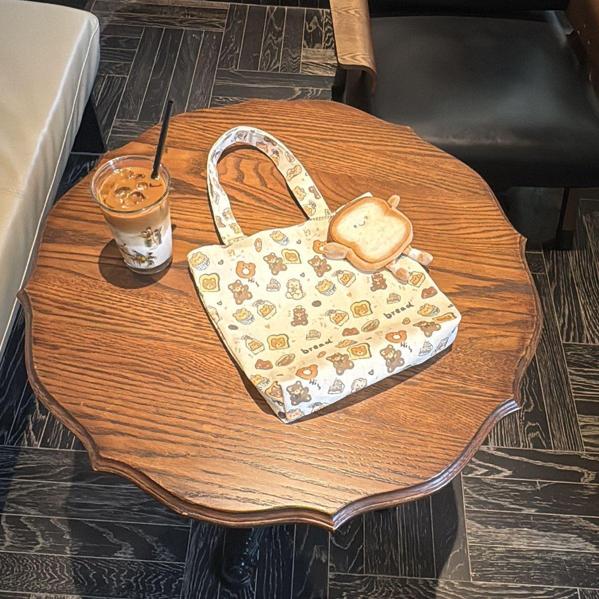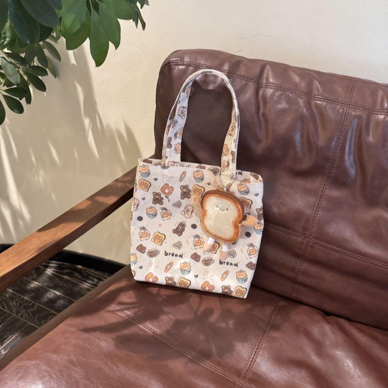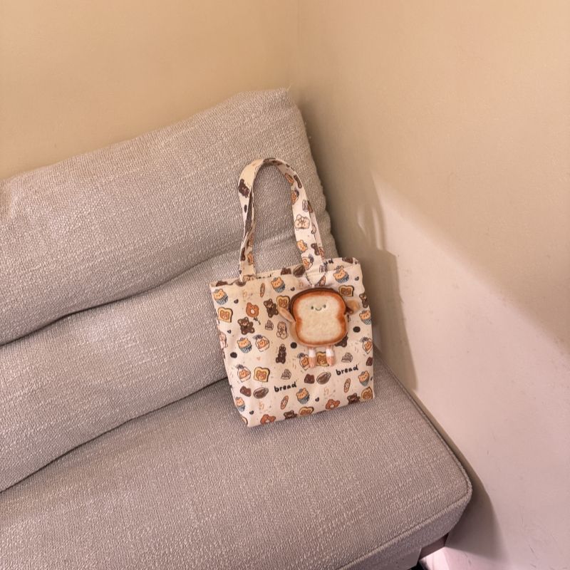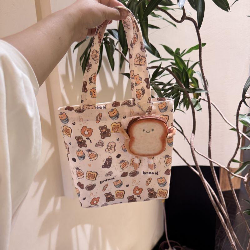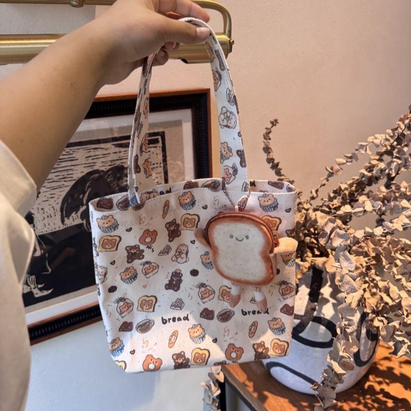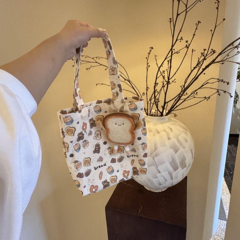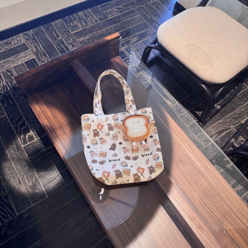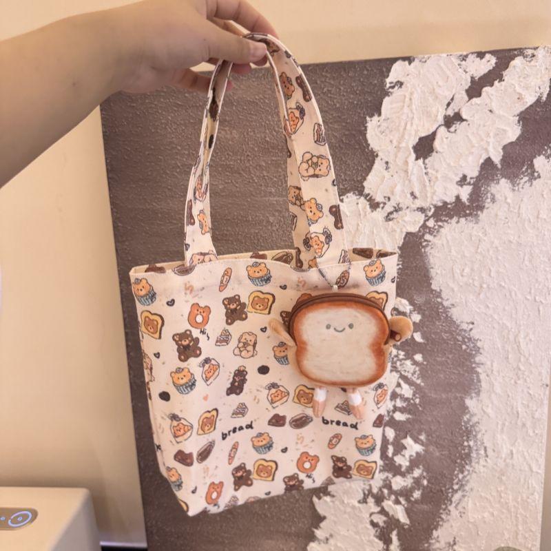 Bread bear canvas tote bag, Bread bear canvas handbag [bread slice pendant]