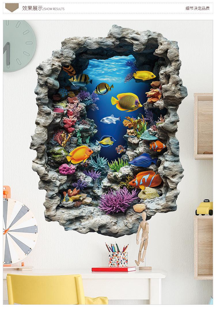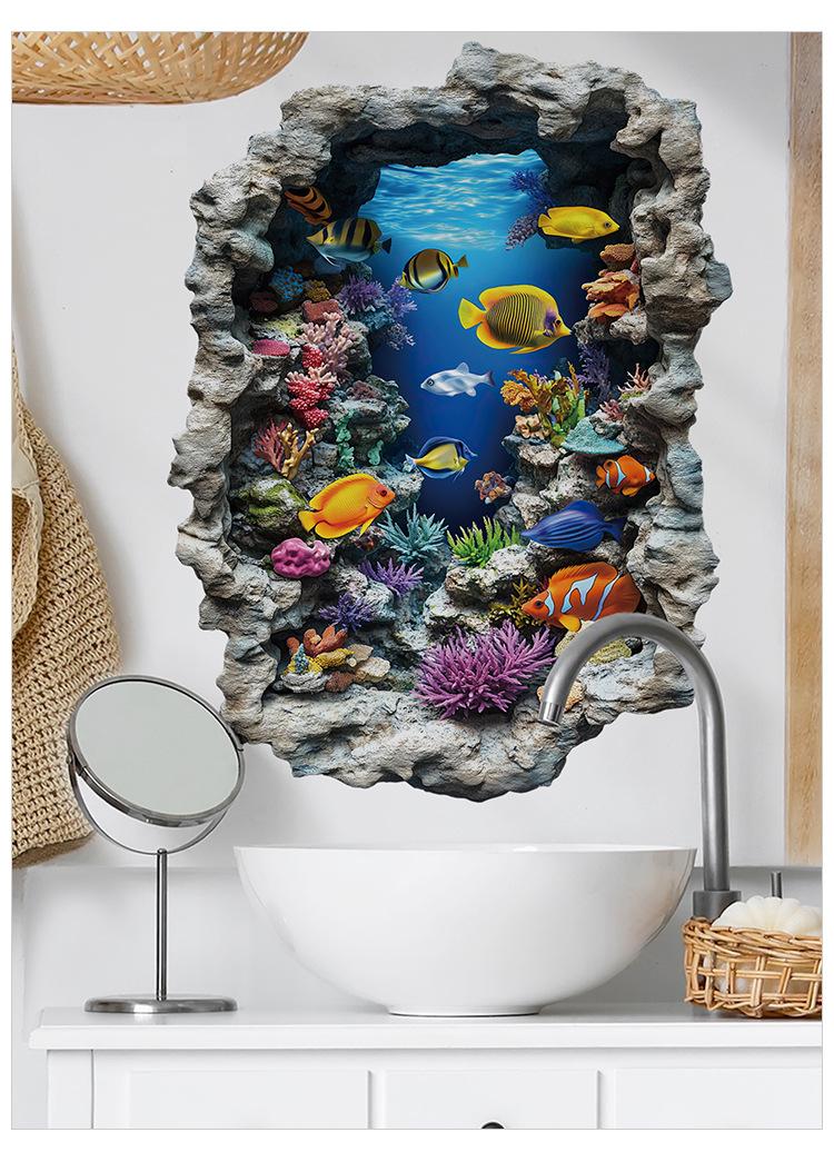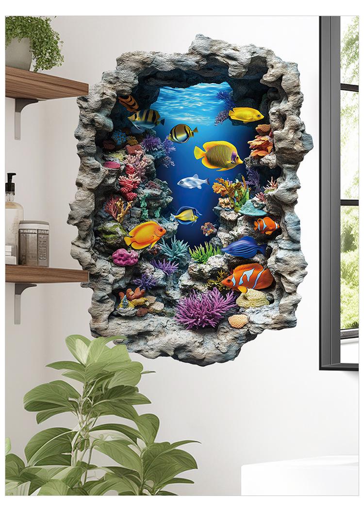 Xian 46017 Adhesivo Decorativo de Pared con Fondo de Peces Marinos con Efecto 3D para Baño, Vidrio, Pared Rota, Peces de Mar Profundo