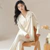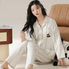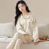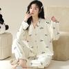 Pijamas de Algodón de Manga Larga para Mujer Primavera y Otoño 2024 Solapa Traje de Ropa de Casa para Primavera, Otoño e Invierno Traje de Mujer