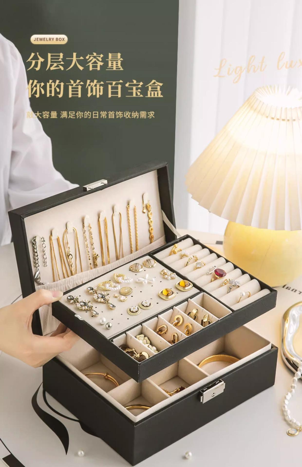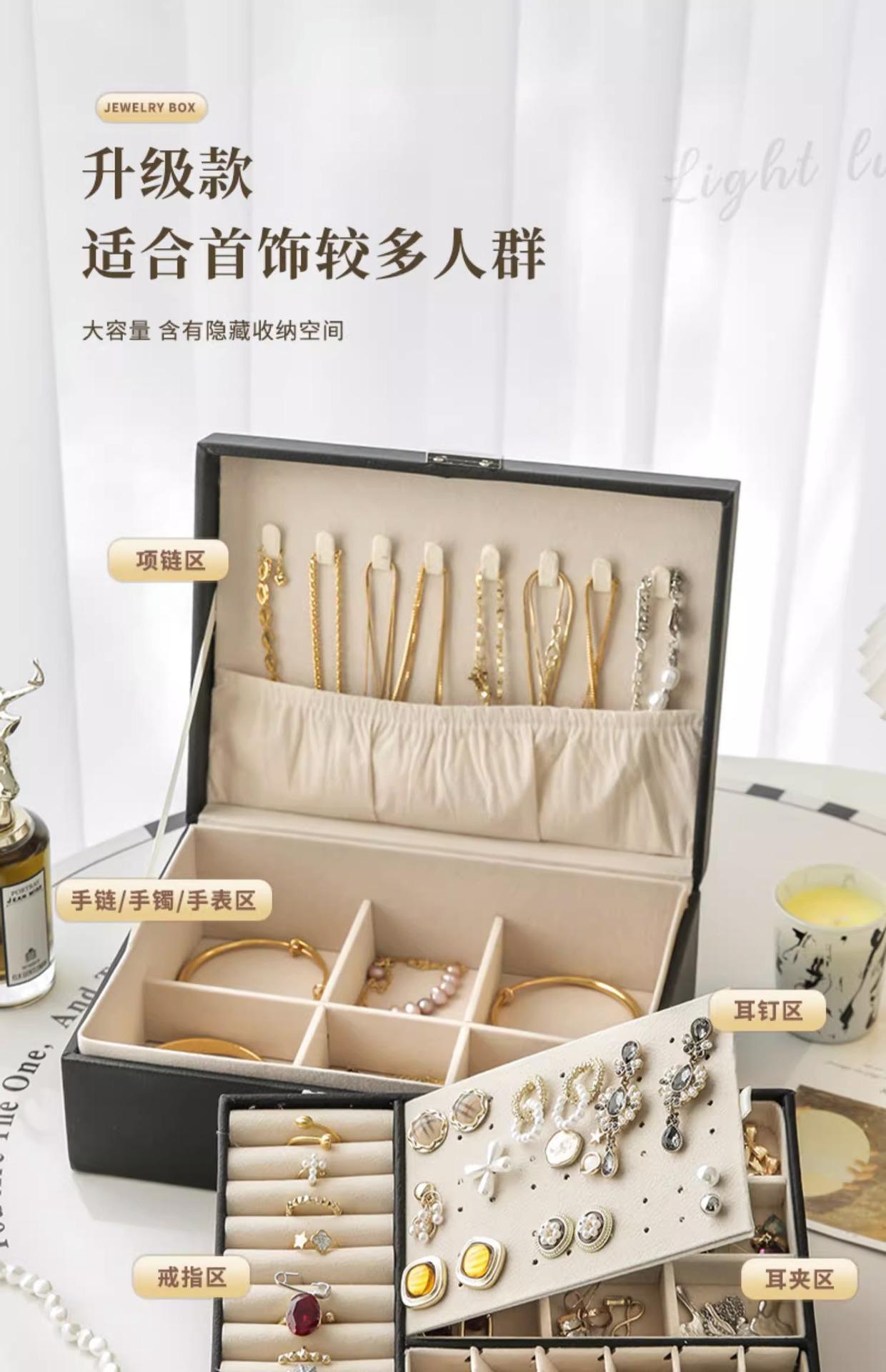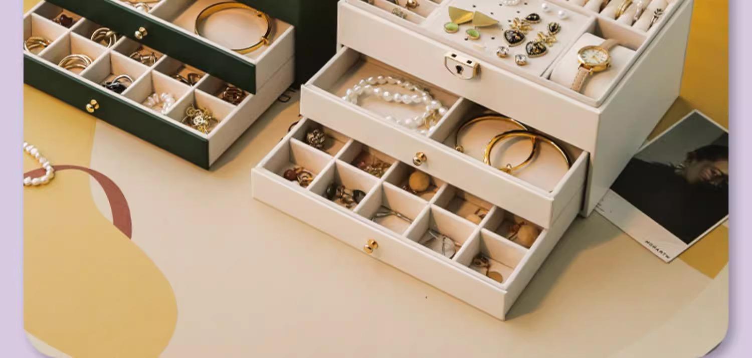 Caja de Joyería Transfronteriza Caja de Almacenamiento con Cajón Terciopelo Anillo Arete Compartimento Pequeño Divisor de Joyería Venta Directa de Fábrica Caja de Regalo