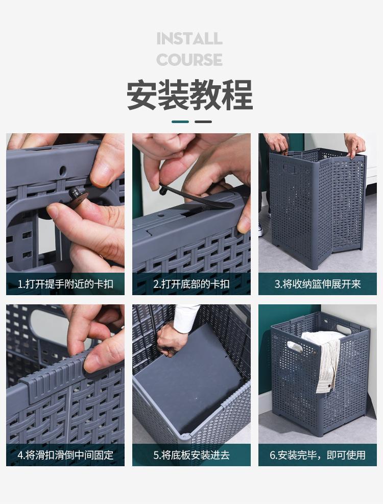 Cesta de Plástico para Ropa Sucia de Hogar Cesta de Almacenamiento Cesta para Ropa Sucia Plegable Cesta de Almacenamiento Portátil Venta al por Mayor para Exportación