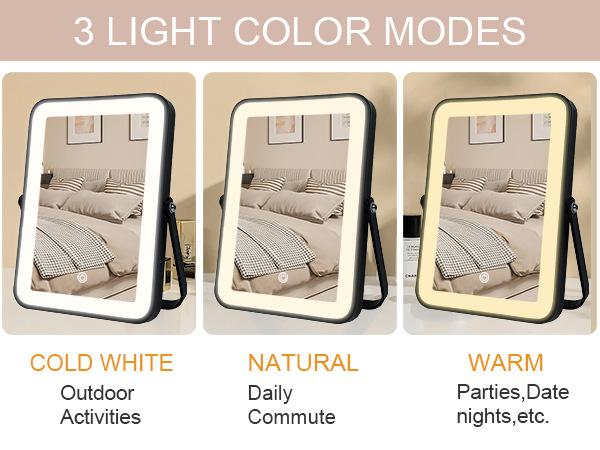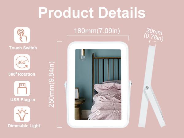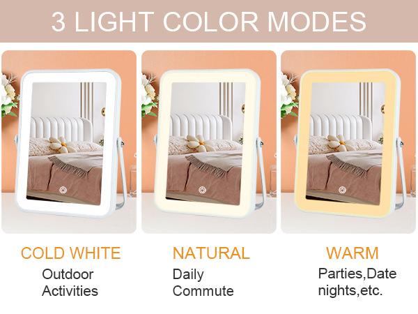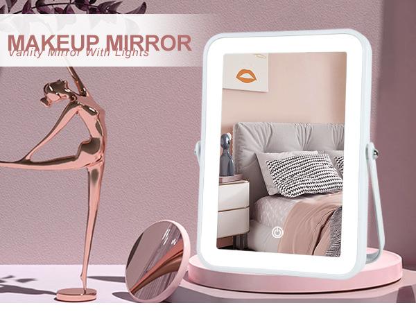 Tocador Transfronterizo Espejo de Escritorio Luminoso Giratorio Dormitorio Viaje Portátil Espejo de Maquillaje con Luz Led Espejo de Regalo