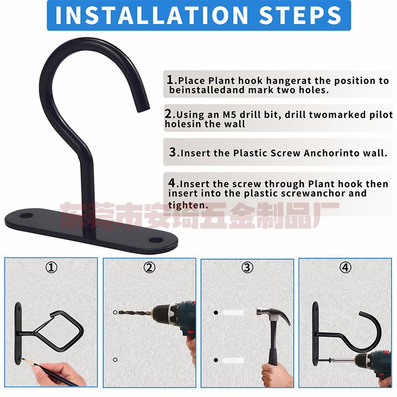 Gancho para cesta de flores, suministro directo de fábrica, en stock, gancho de hierro forjado, gancho para plantas, gancho de techo, gancho para cesta de flores para balcón, gancho de pared