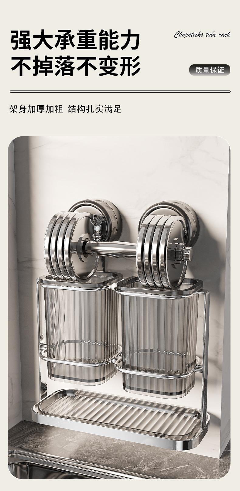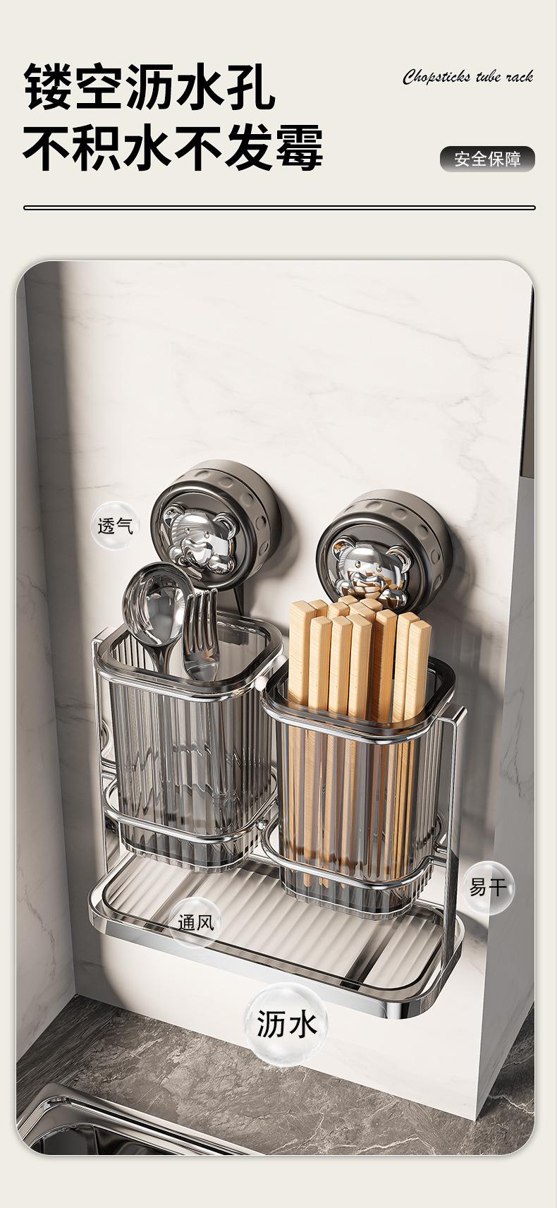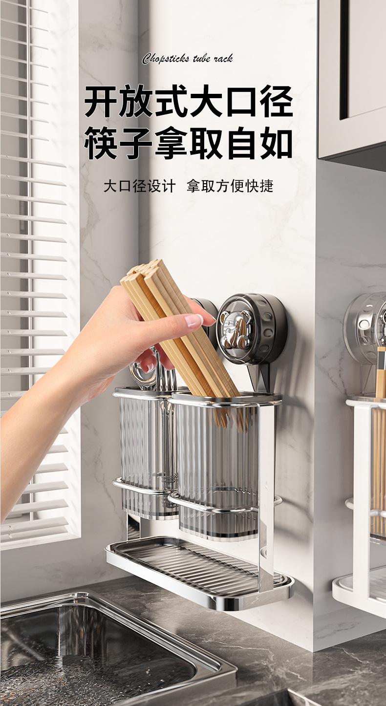 Nuevo tubo de acero inoxidable con ventosa para palillos chinos, caja de almacenamiento para palillos chinos y cucharas, escurridor sin perforaciones, venta al por mayor
