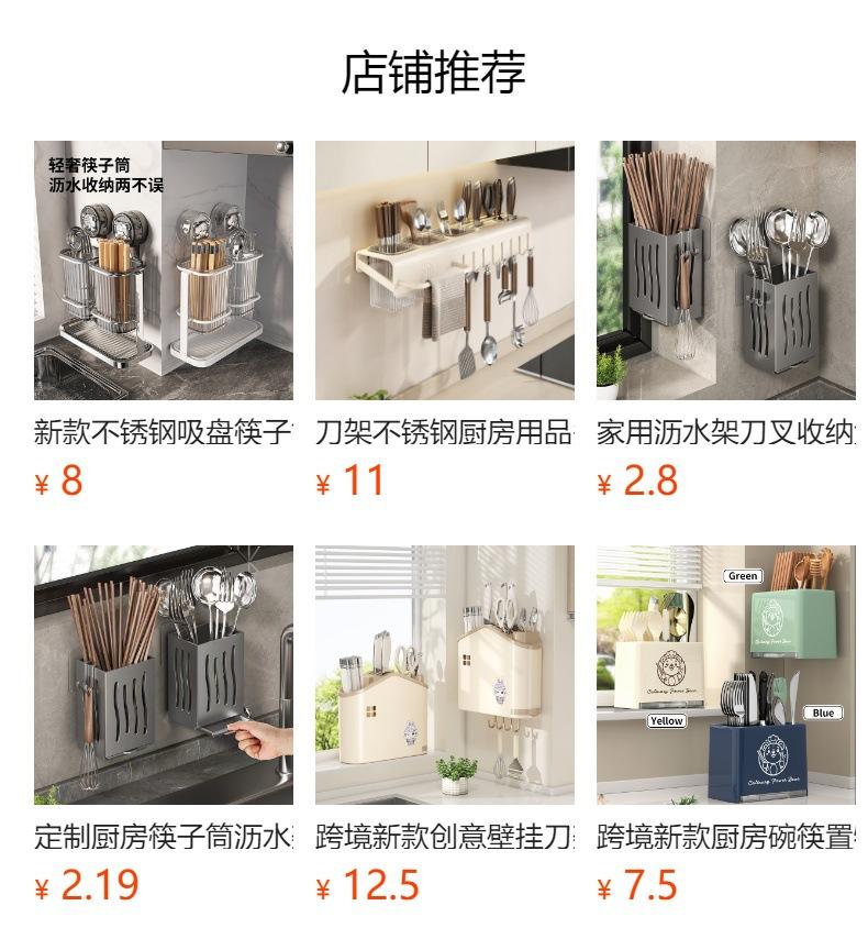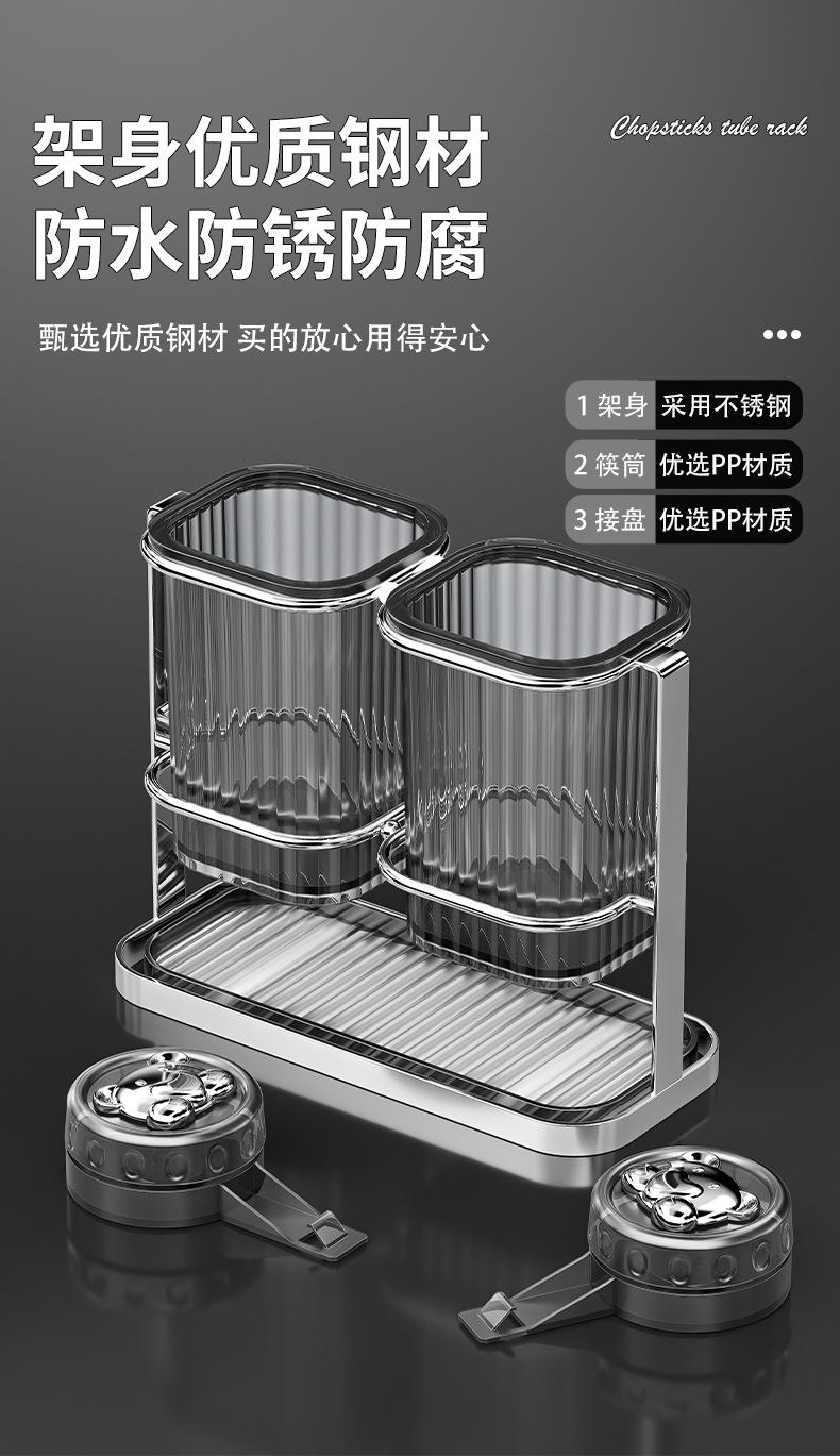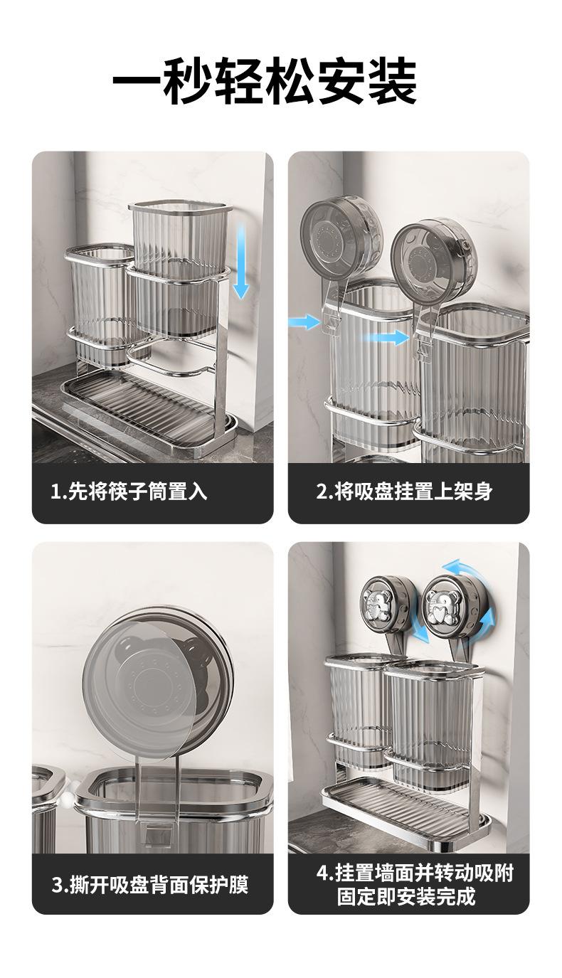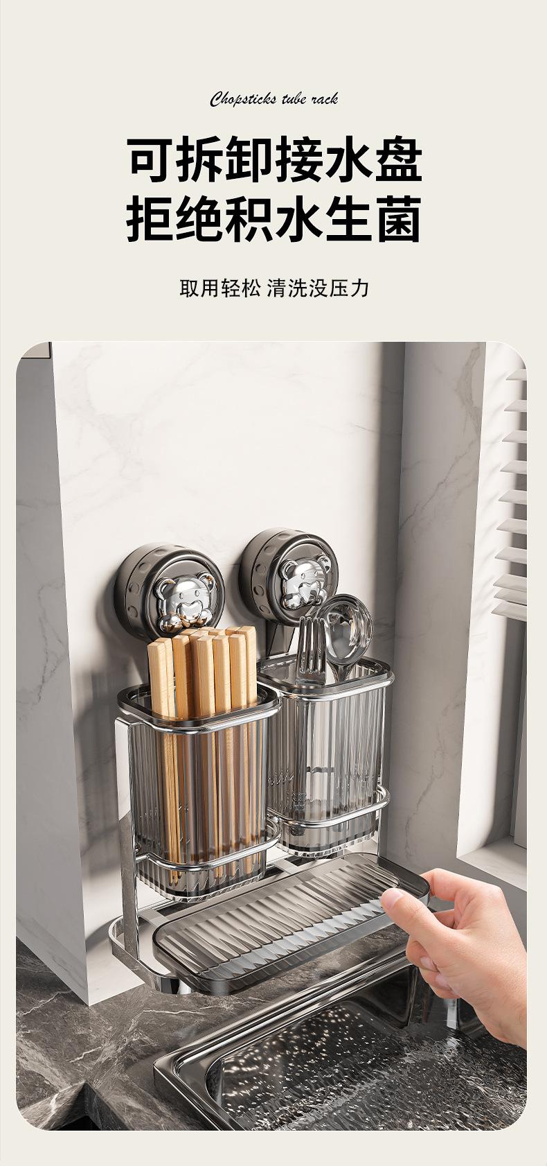 Nuevo tubo de acero inoxidable con ventosa para palillos chinos, caja de almacenamiento para palillos chinos y cucharas, escurridor sin perforaciones, venta al por mayor