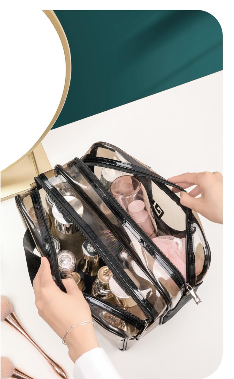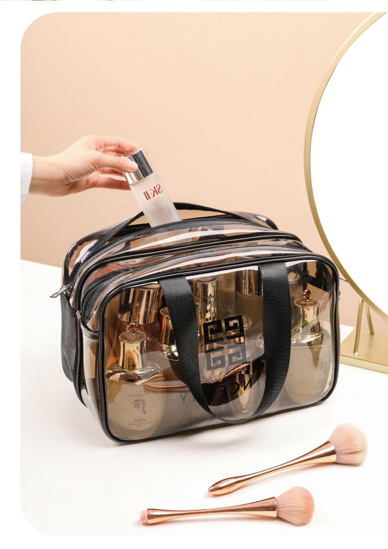 Compra Neceser impermeable de PVC para cosméticos, bolsa de gran tamaño, transparente, de doble capa, portátil, para viaje, bolso de mano al por mayor en Joom.pro
