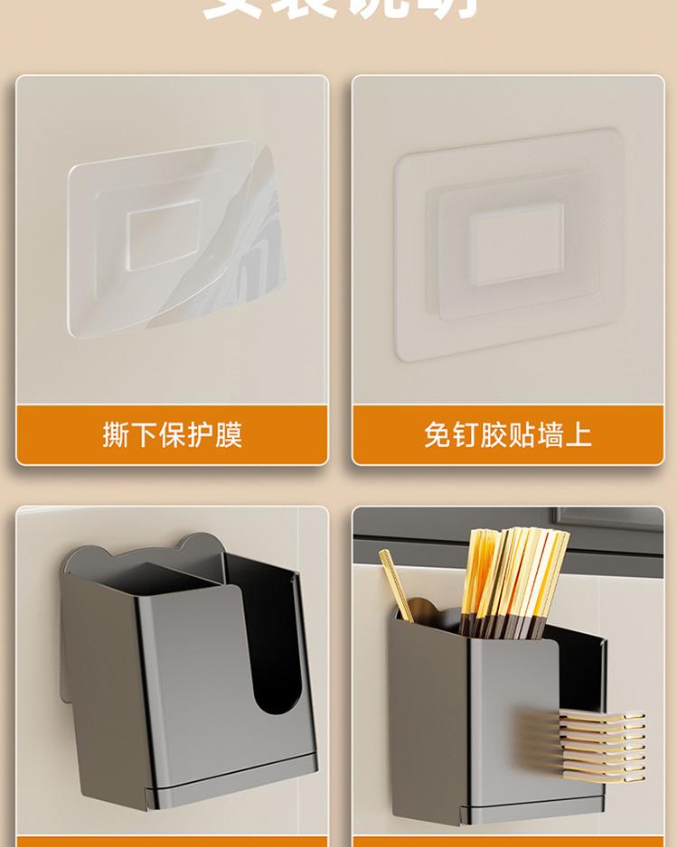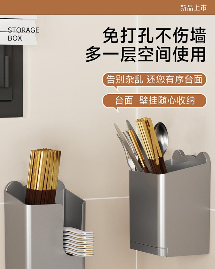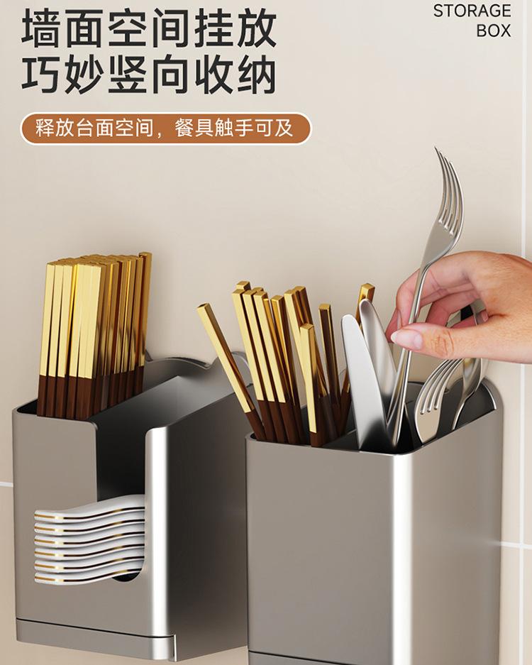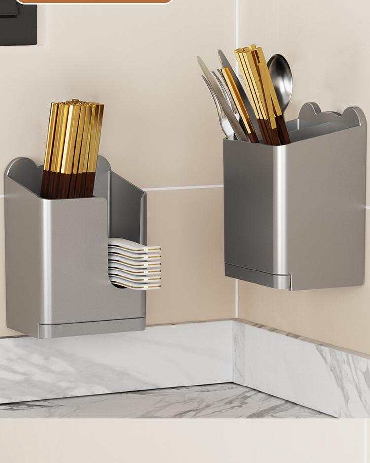Nuevo soporte para palillos de ABS, sin perforaciones, para cocina, montado en la pared, cuadrado, con escurridor, para guardar cucharas y palillos.