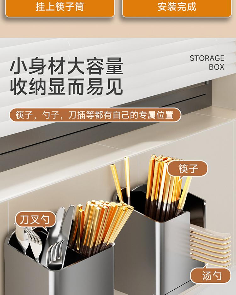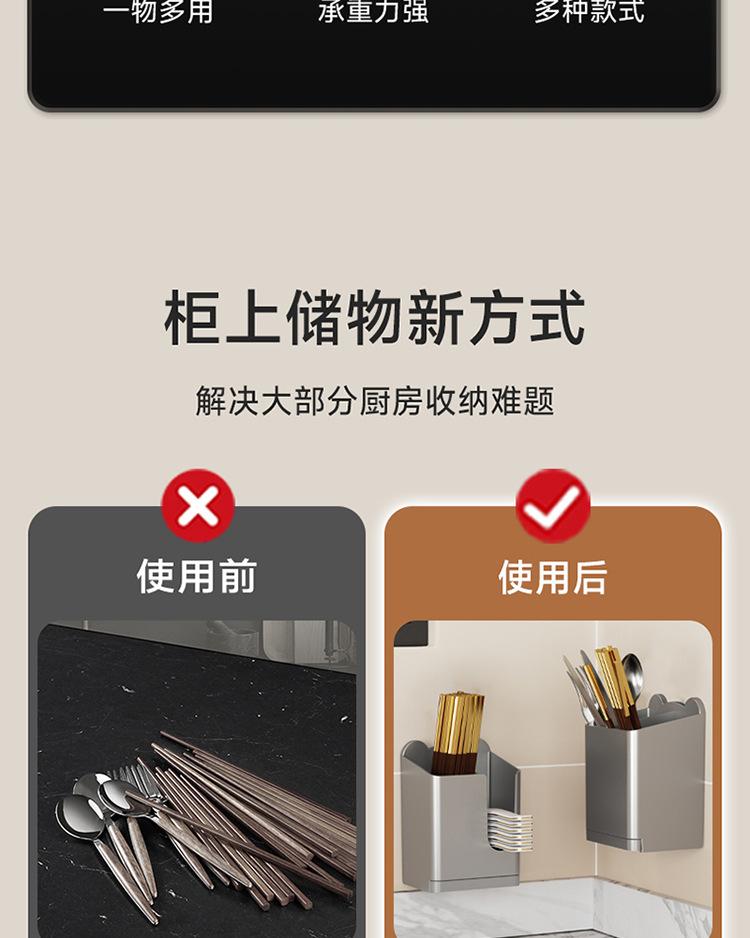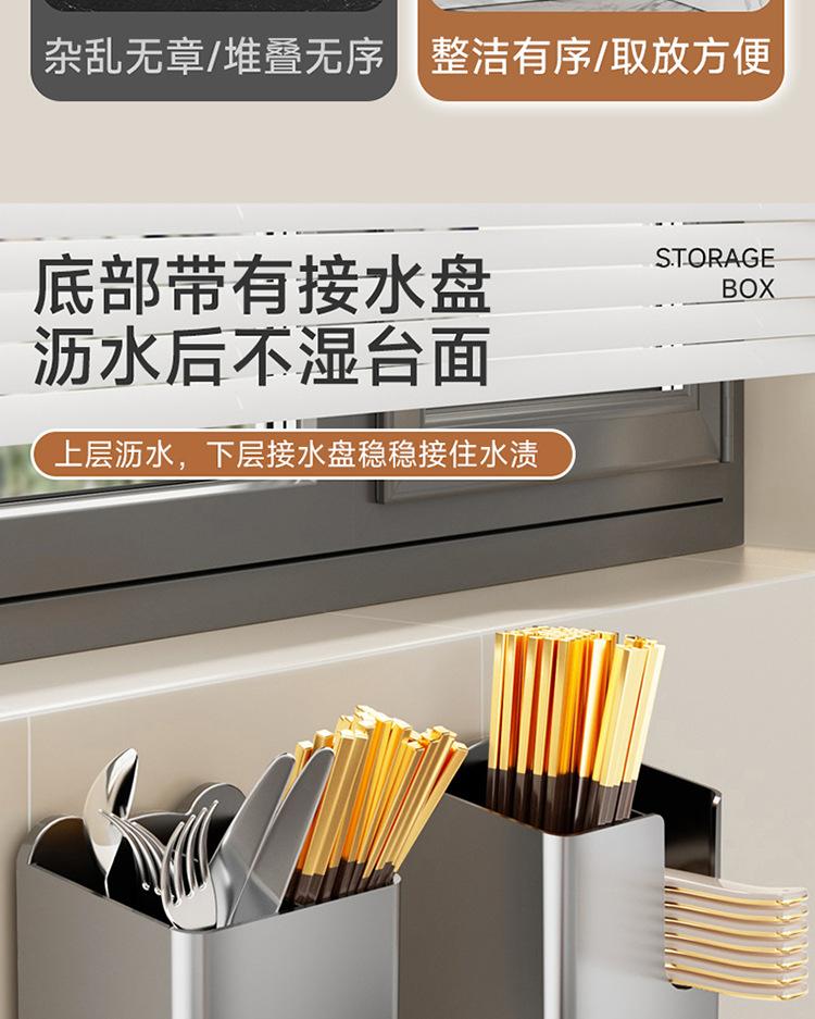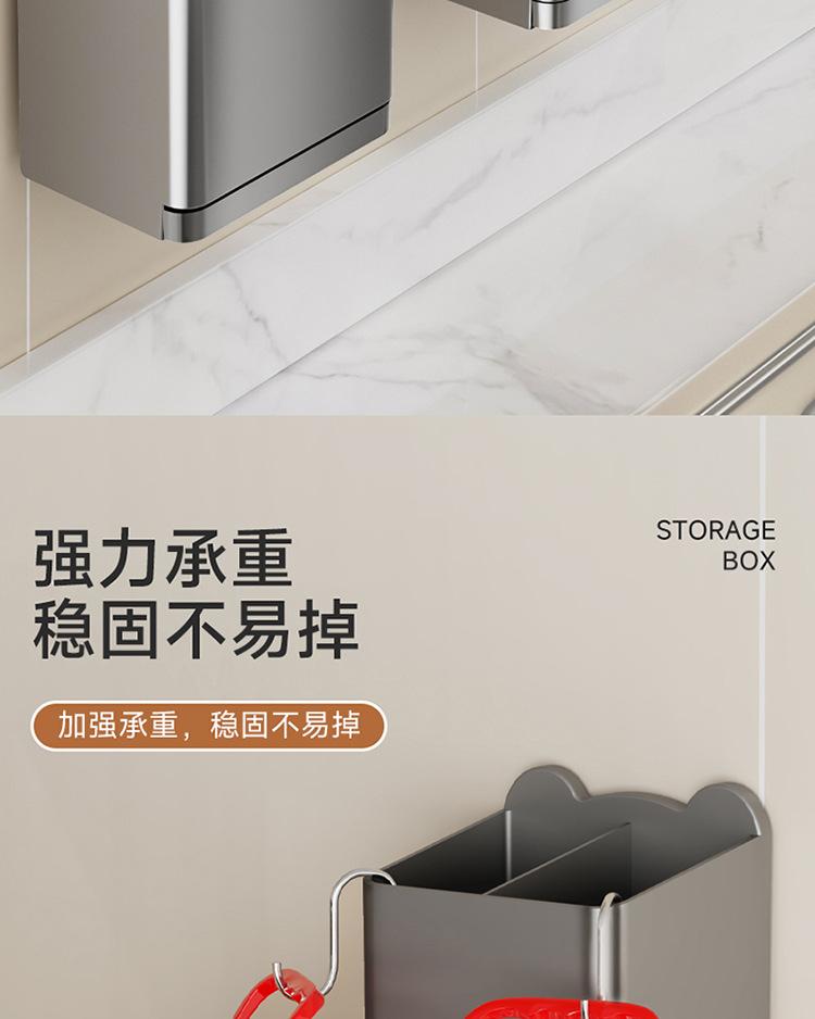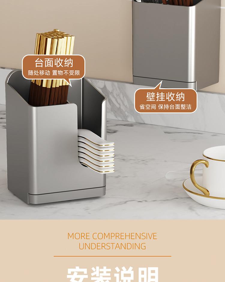 Nuevo soporte para palillos de ABS, sin perforaciones, para cocina, montado en la pared, cuadrado, con escurridor, para guardar cucharas y palillos.