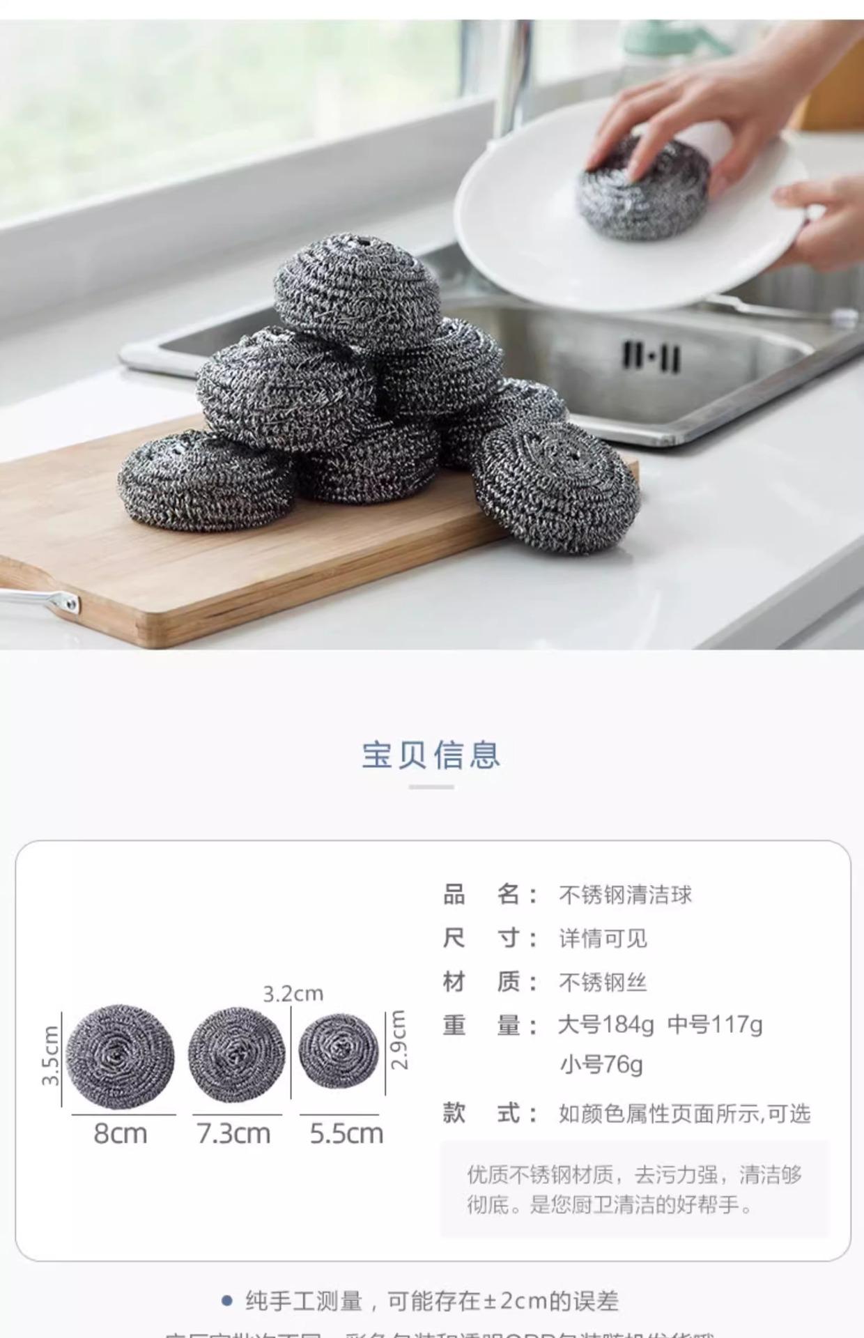Cepillo de limpieza de bolas de acero inoxidable de gran tamaño, cepillo de cocina, limpiador de ollas, artefacto para descontaminación del hogar, suministros de limpieza.