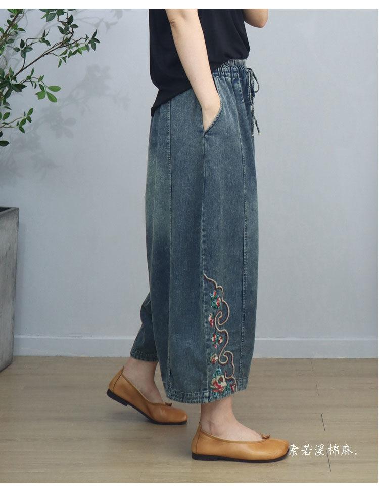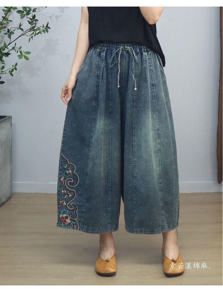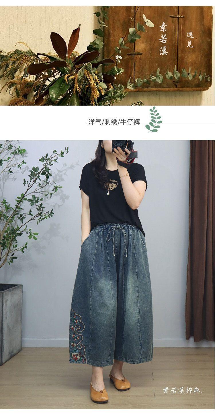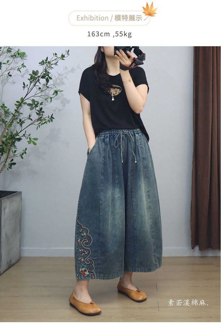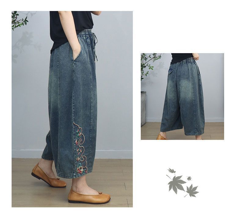Compra Pantalones vaqueros anchos bordados de verano para mujer, cintura holgada, combinables, holgados, adelgazantes, vintage, blancos, informales, recortados al por mayor en Joom.pro