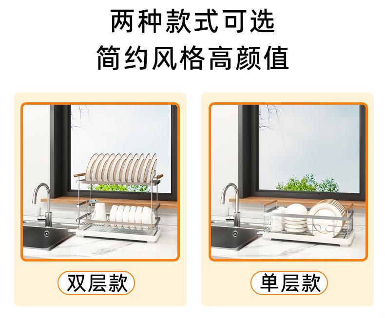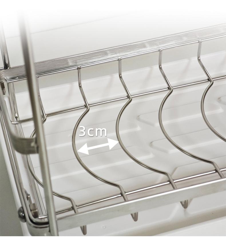 Encimera de Cocina Lado del Fregadero Asas de Madera Una y Doble Capa Acero Inoxidable Platos y Escurridor Platos y Plato Palillos Escurridor Estante de Almacenamiento de Cocina