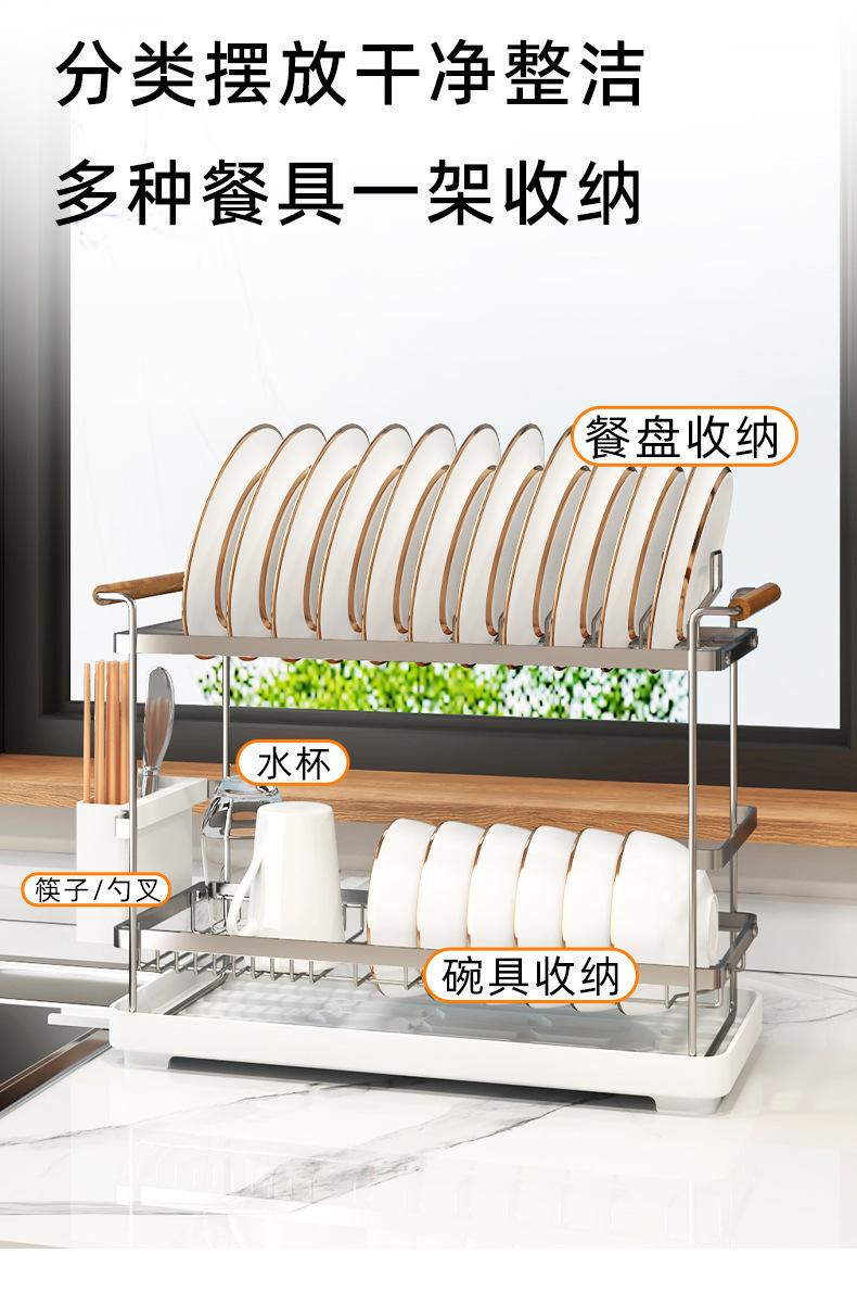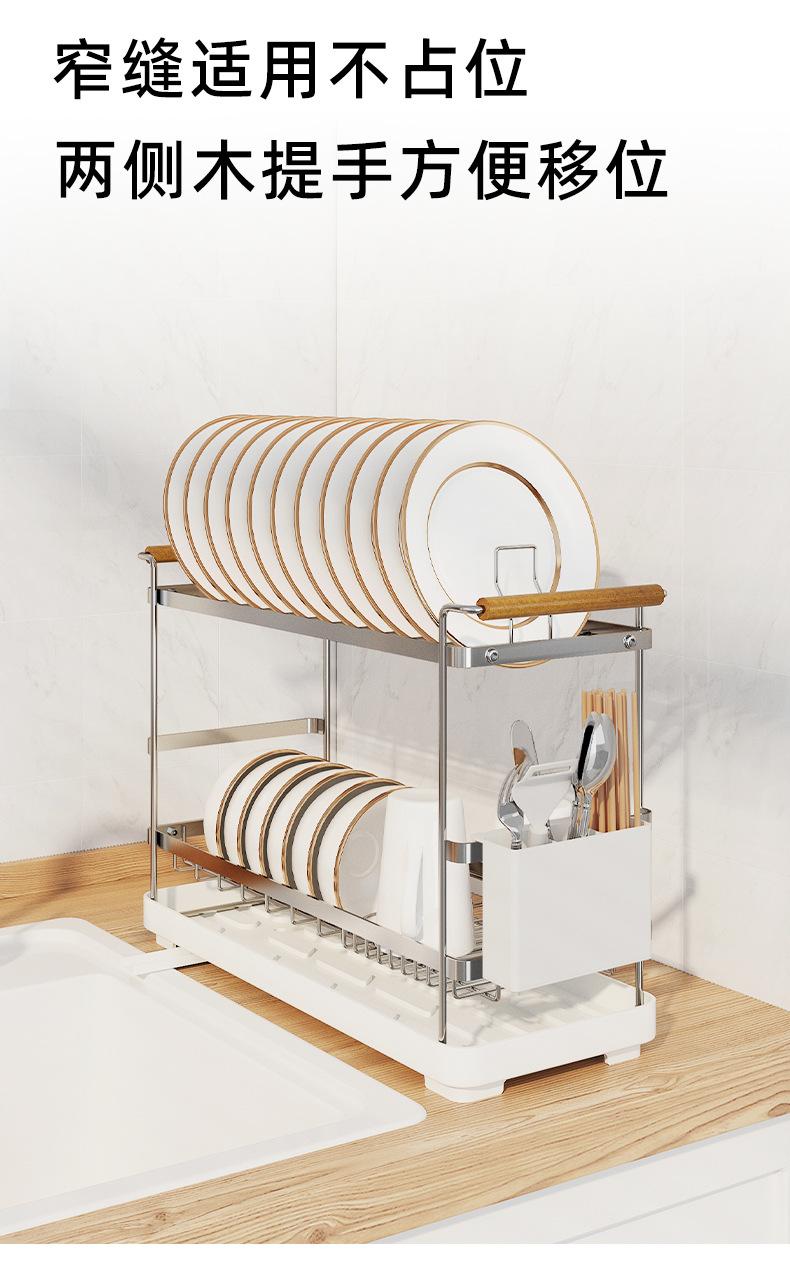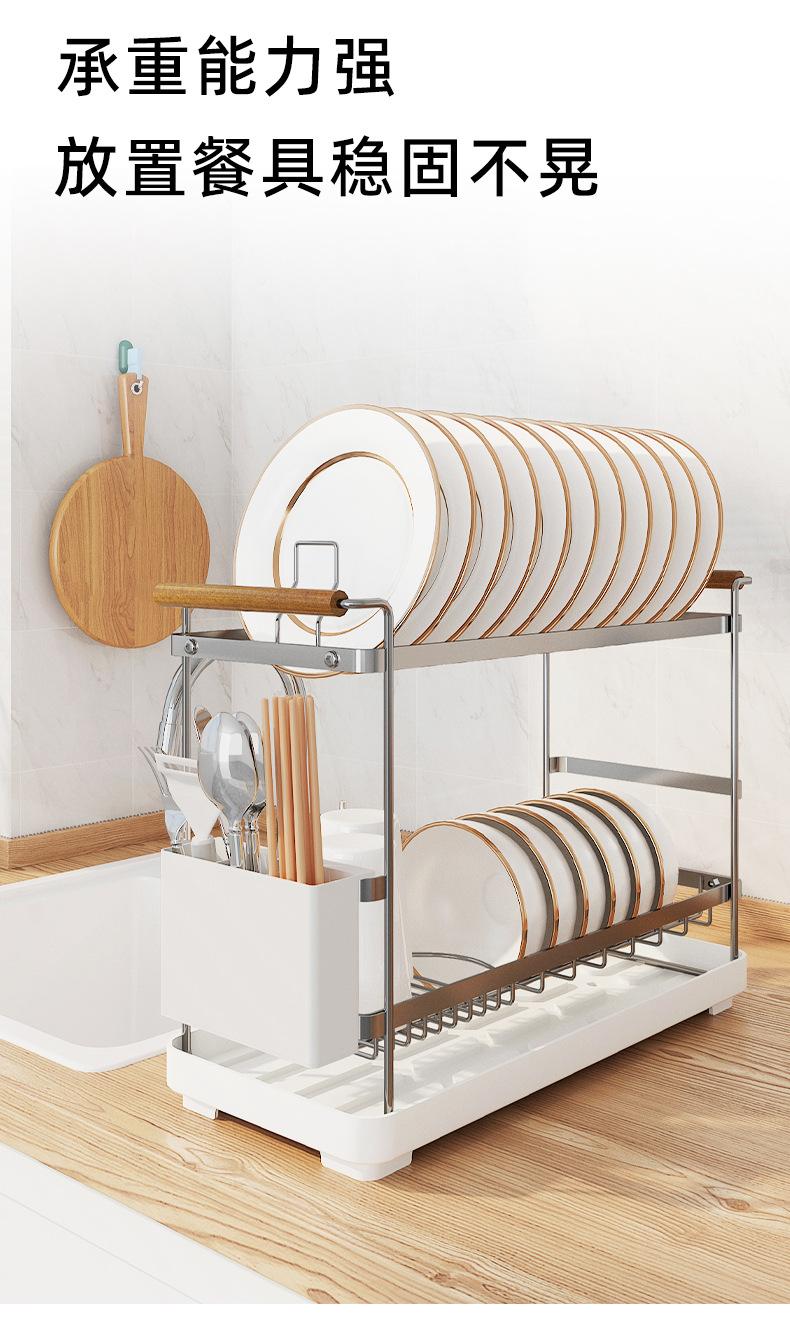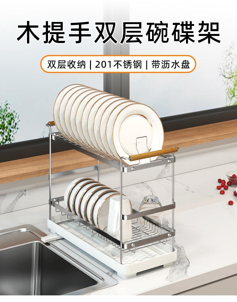 Double layer of wooden handle dish rack + chopstick cage 44.5*17.5*33cm