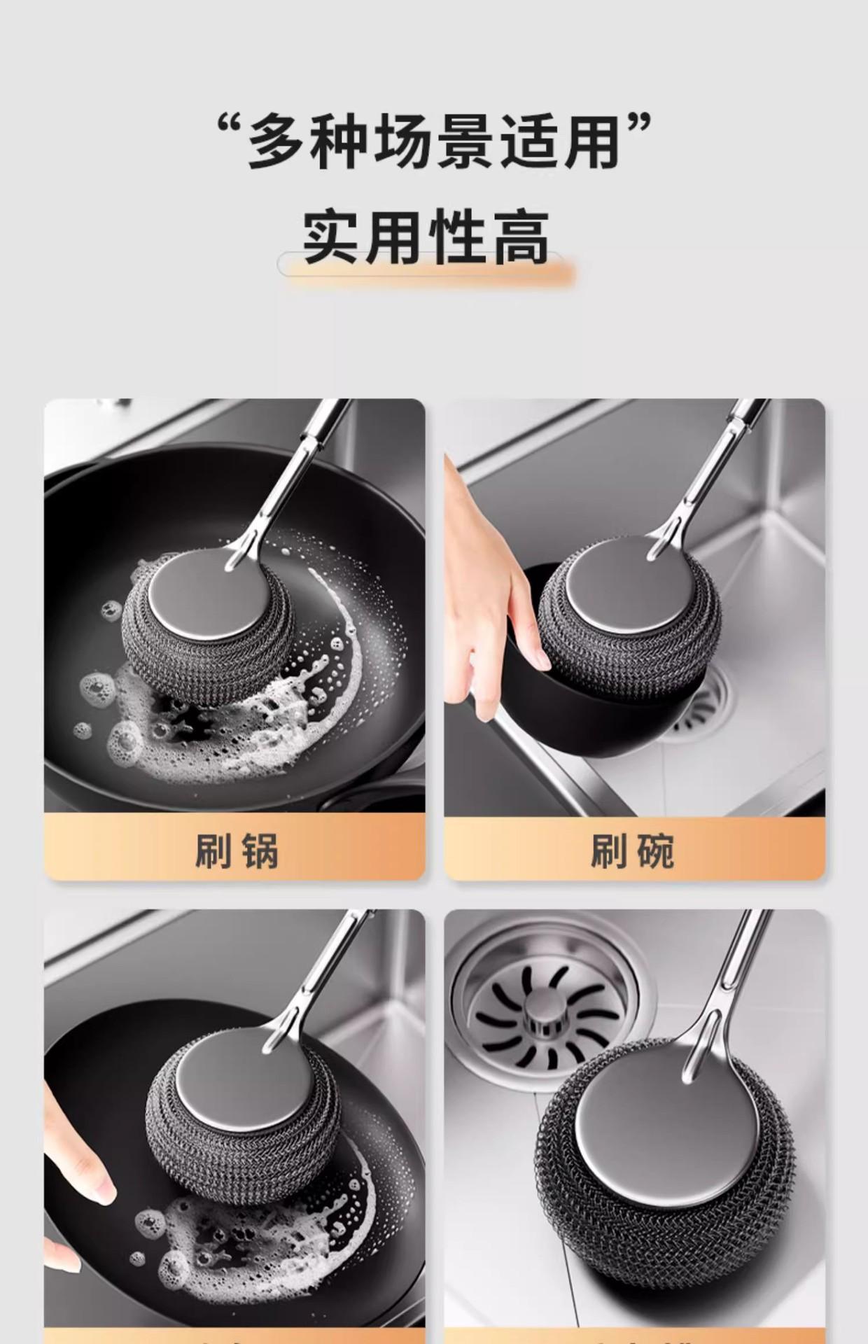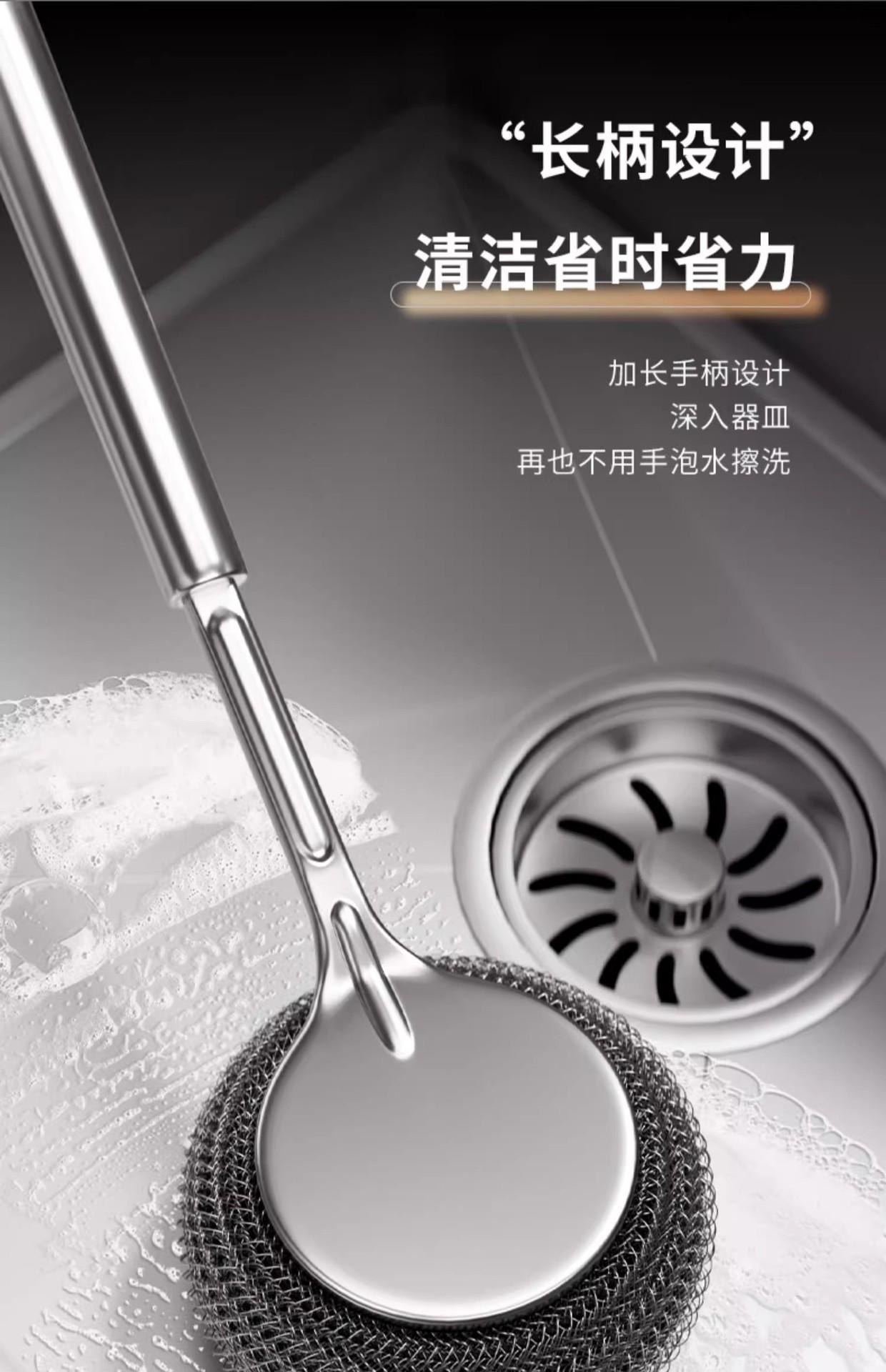 Nuevo 0.01 envío gratis cepillo para ollas de acero inoxidable mango largo cepillo para ollas cepillo de limpieza bola de acero para el hogar con mango