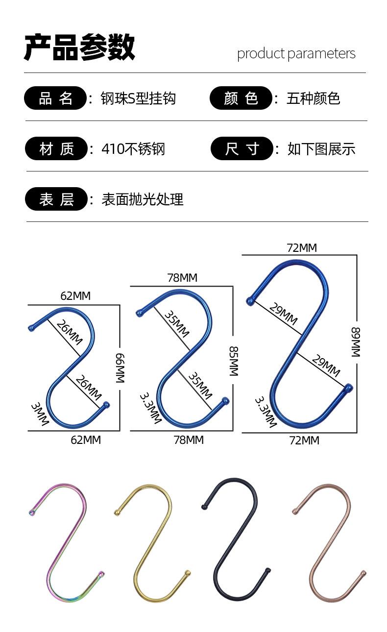 Large colorful S-hook [410 stainless steel]]