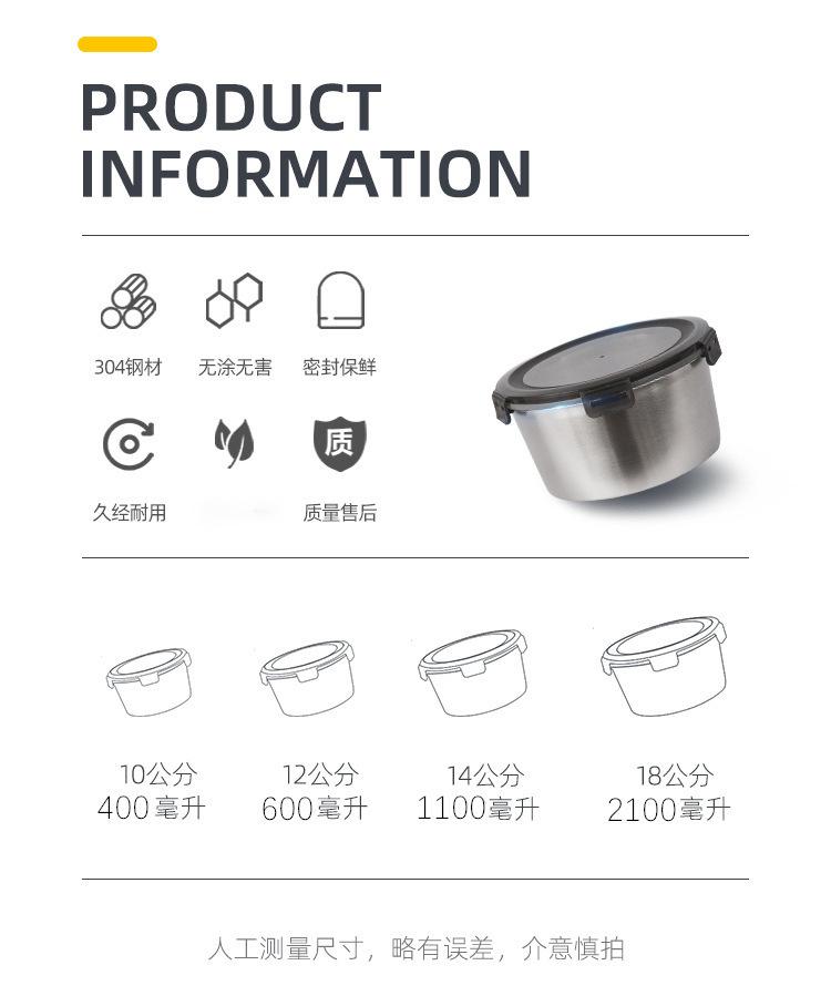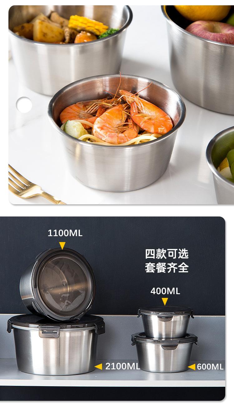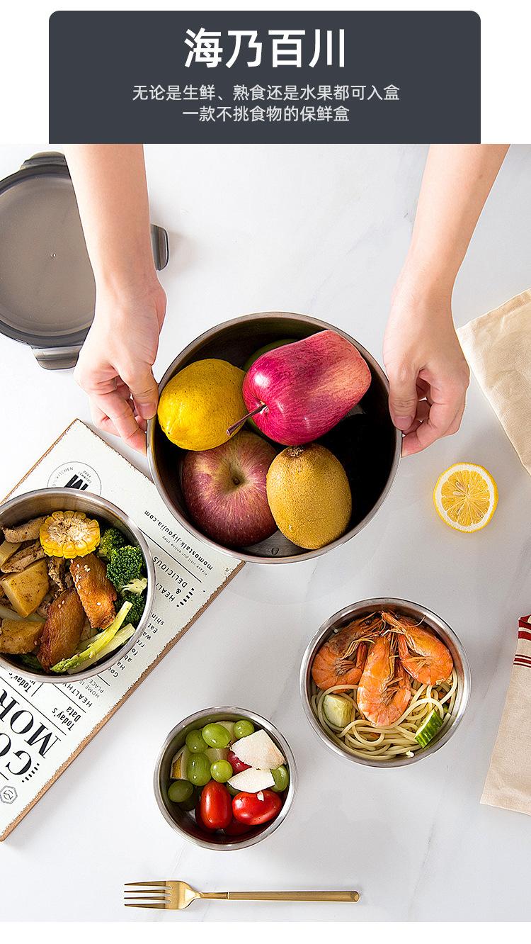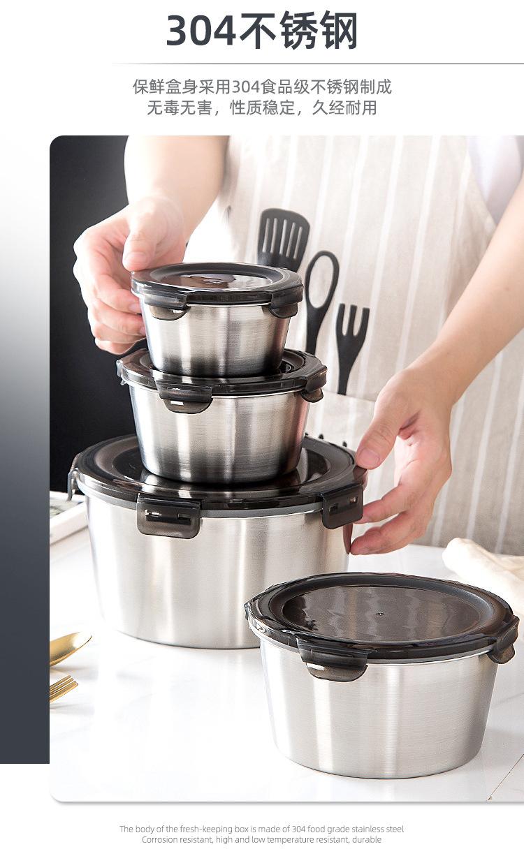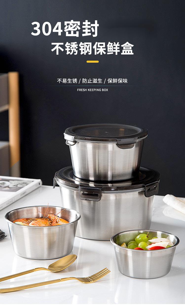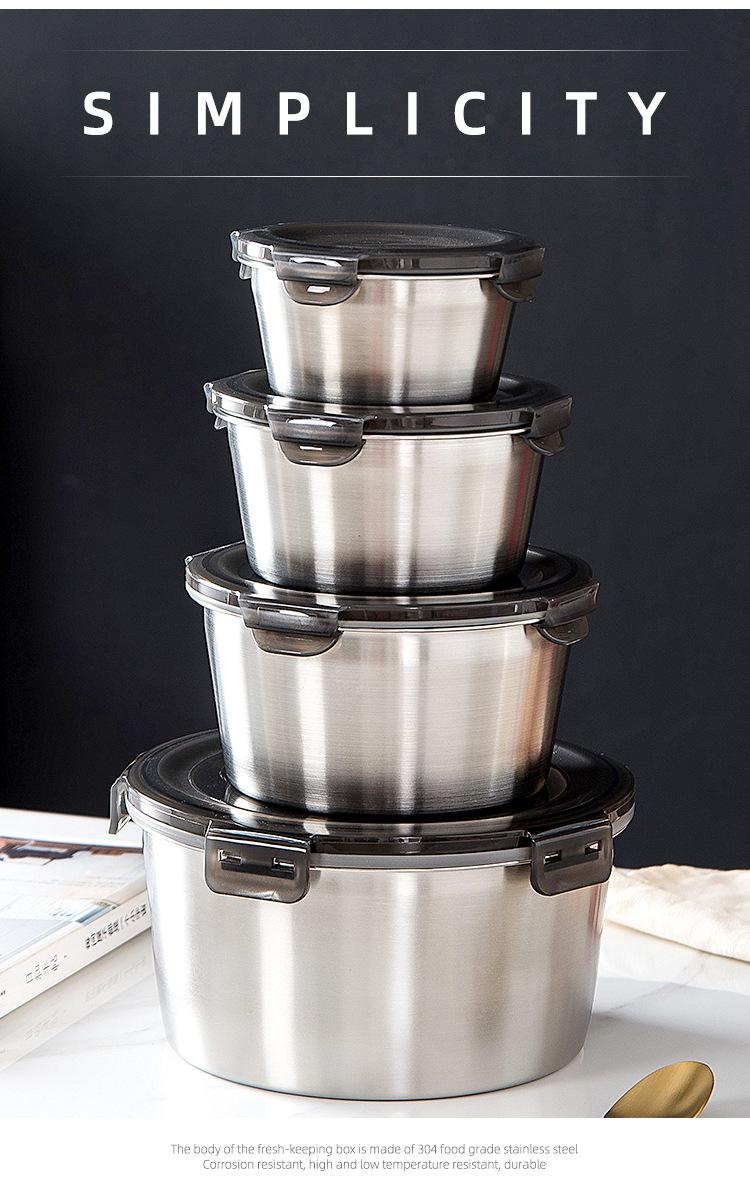 Caja para conservar la frescura de la fruta, caja de almacenamiento para refrigerador, acero inoxidable 304 con tapa, tazón sellado para conservar la frescura, lonchera