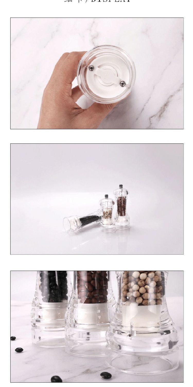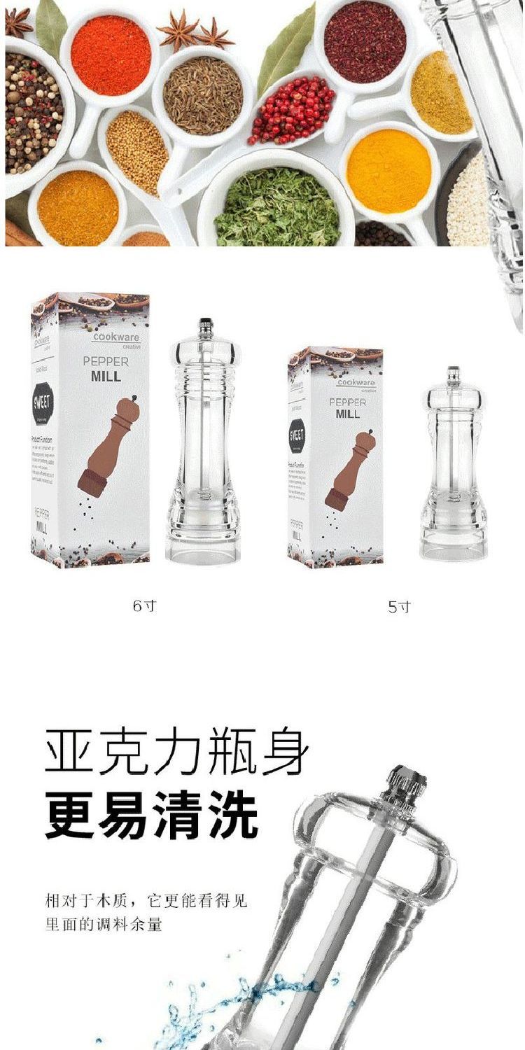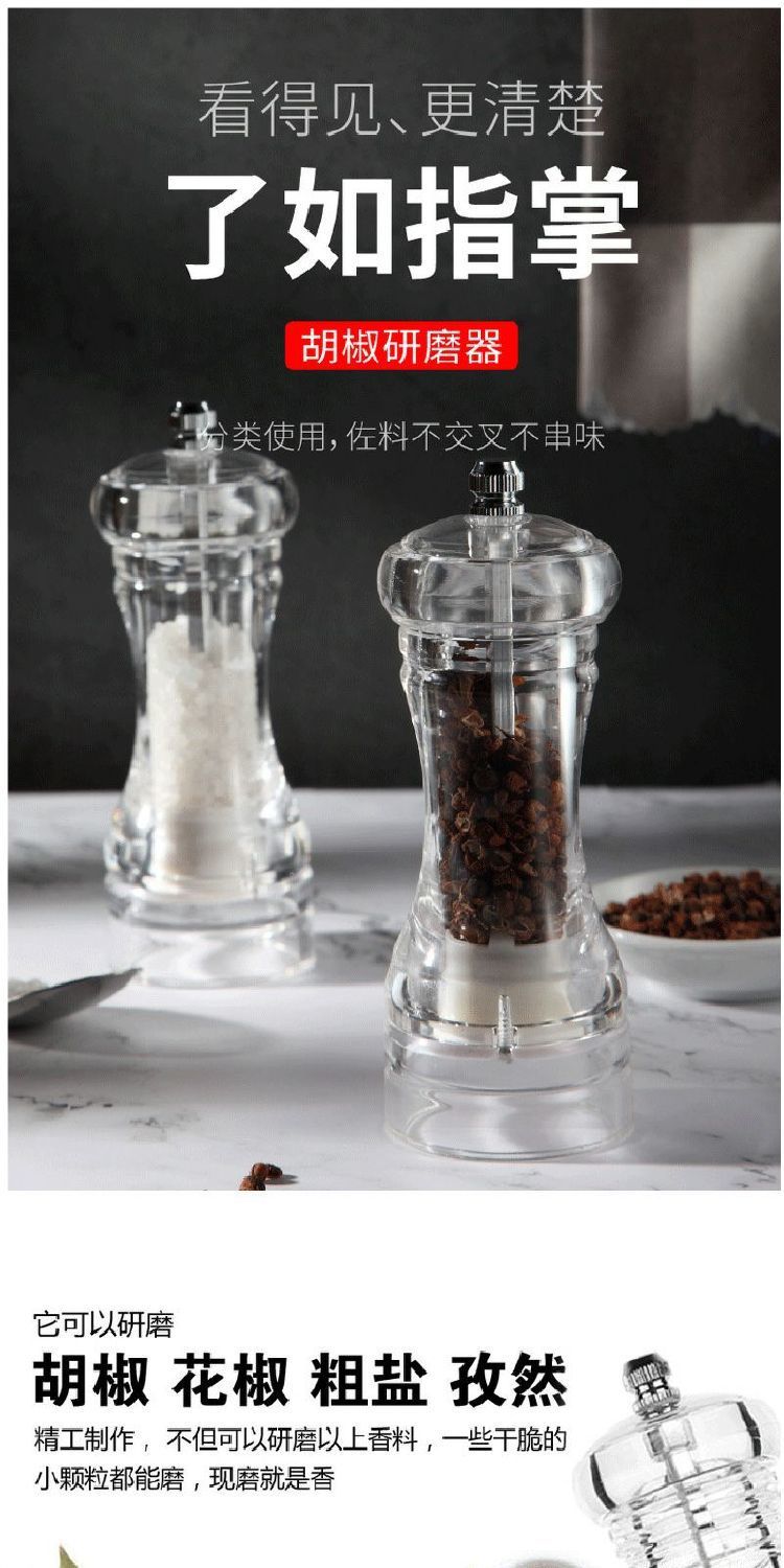 Molinillo de pimienta negra acrílica de color transparente, molinillo de pimienta en polvo, frasco de pimienta, frasco de caja fina, utensilios de cocina