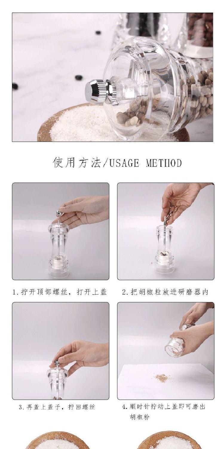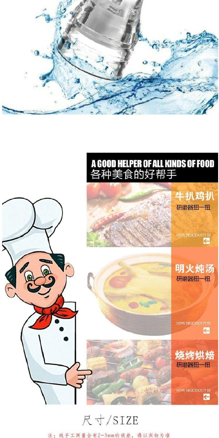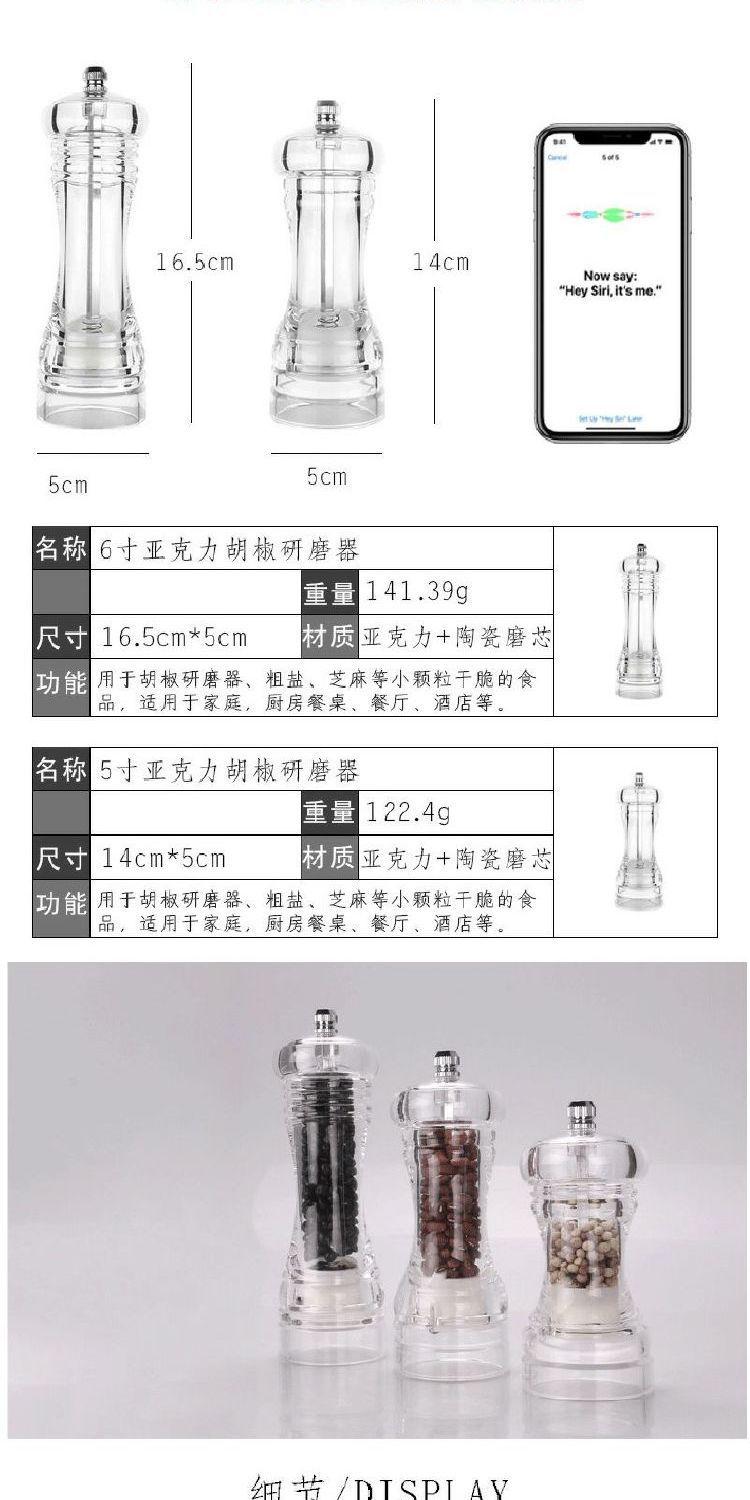 Molinillo de pimienta negra acrílica de color transparente, molinillo de pimienta en polvo, frasco de pimienta, frasco de caja fina, utensilios de cocina