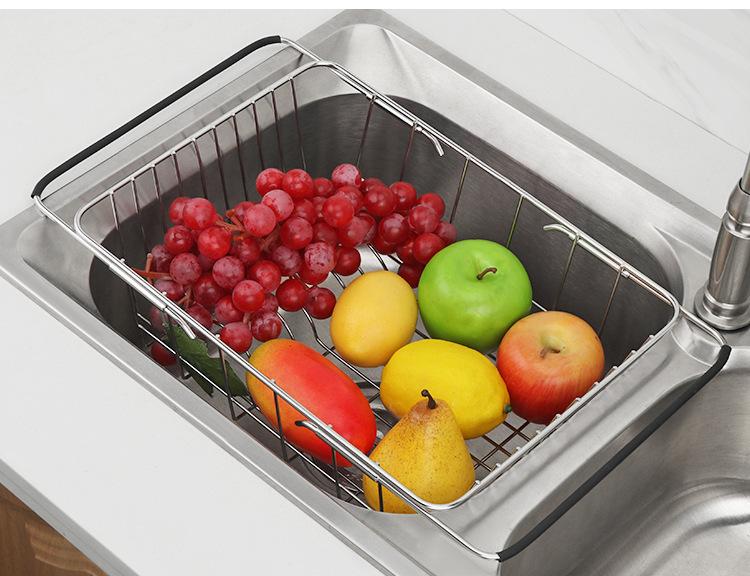 Cesta de drenaje telescópica de acero inoxidable para fregadero, escurridor de platos, escurridor de vasos de agua para frutas y verduras, estante de almacenamiento de cocina