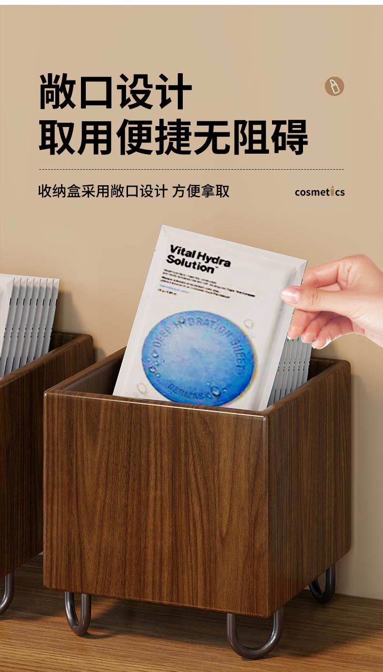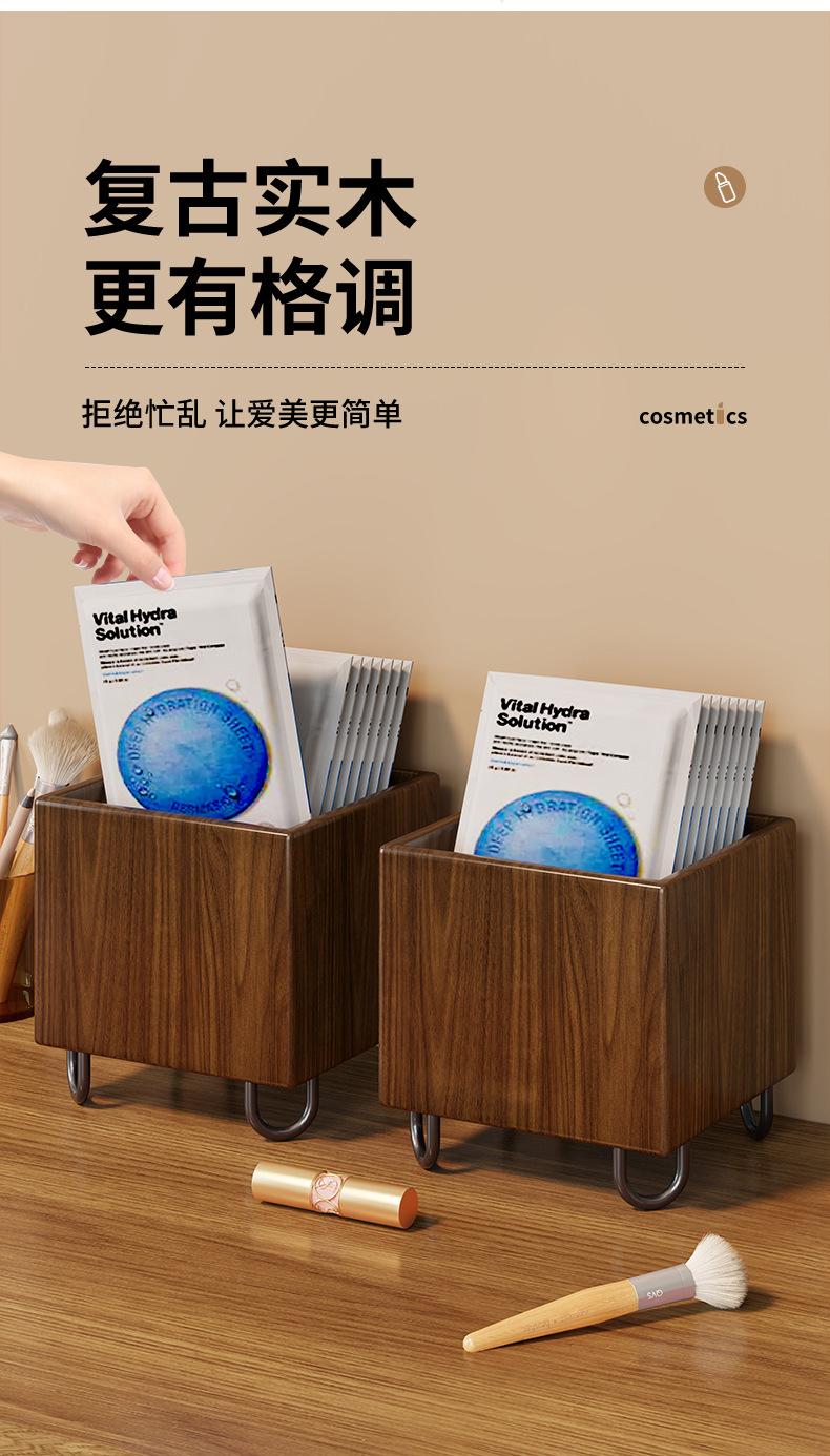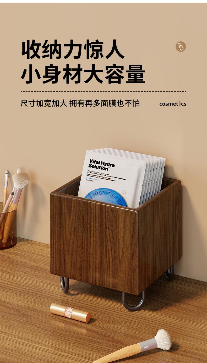 Caja de madera maciza para guardar mascarillas, tocador de baño, caja de acabado cosmético, estante para guardar pintalabios y cuidado de la piel.