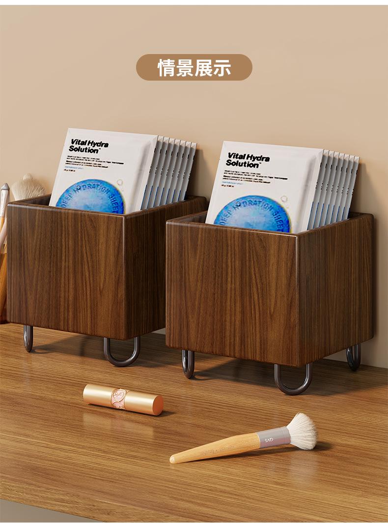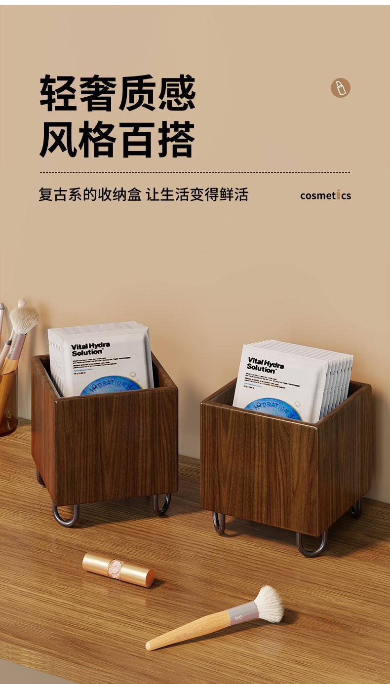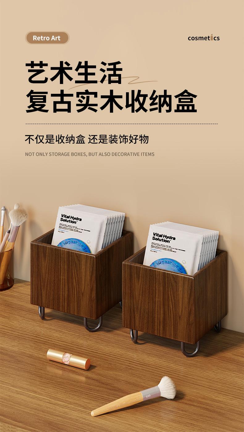 Caja de madera maciza para guardar mascarillas, tocador de baño, caja de acabado cosmético, estante para guardar pintalabios y cuidado de la piel.
