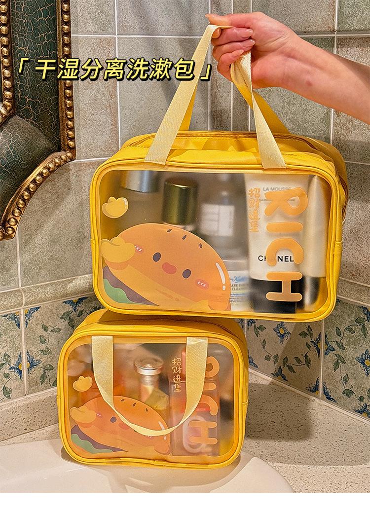 Bolsa de cosméticos transparente, portátil, impermeable, para almacenamiento separado en seco y húmedo, para natación, fitness, baño, neceser de viaje.