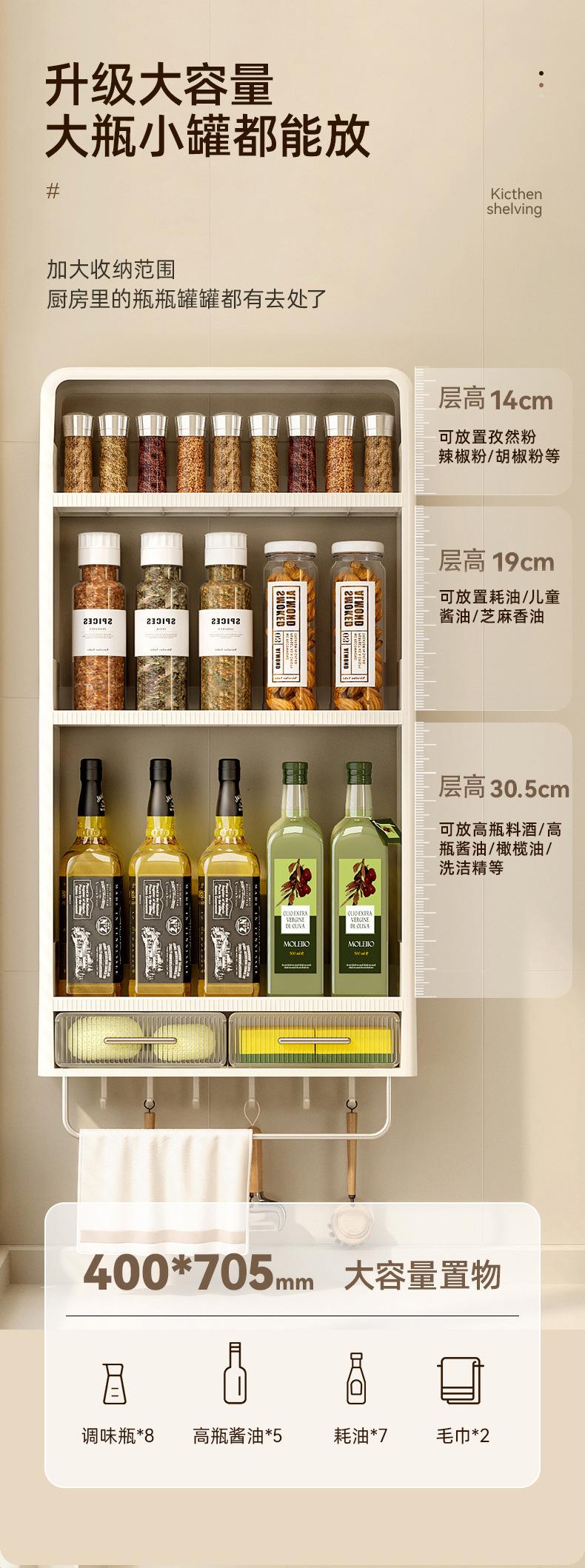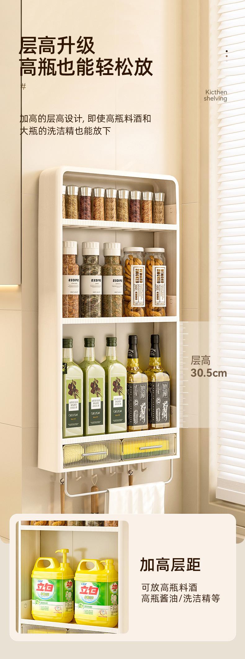 Estante de Almacenamiento de Cocina para el Hogar Multicapa Montado en la Pared de Plástico Fuerte sin Perforaciones para Botellas de Condimento Estante de Almacenamiento de Condimentos de Pared