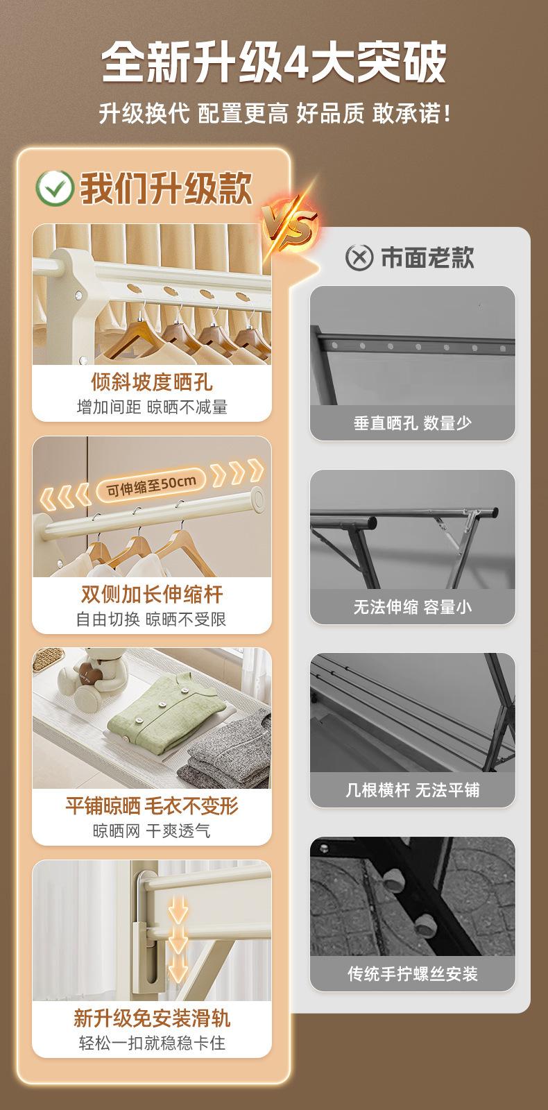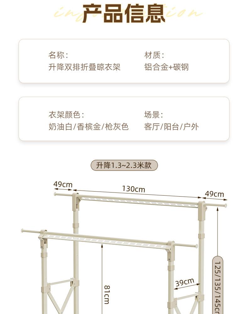 Champagne gold [1.3- 2.3m telescopic - double row lifting] drying net - free wheels❤Upgrade without installation