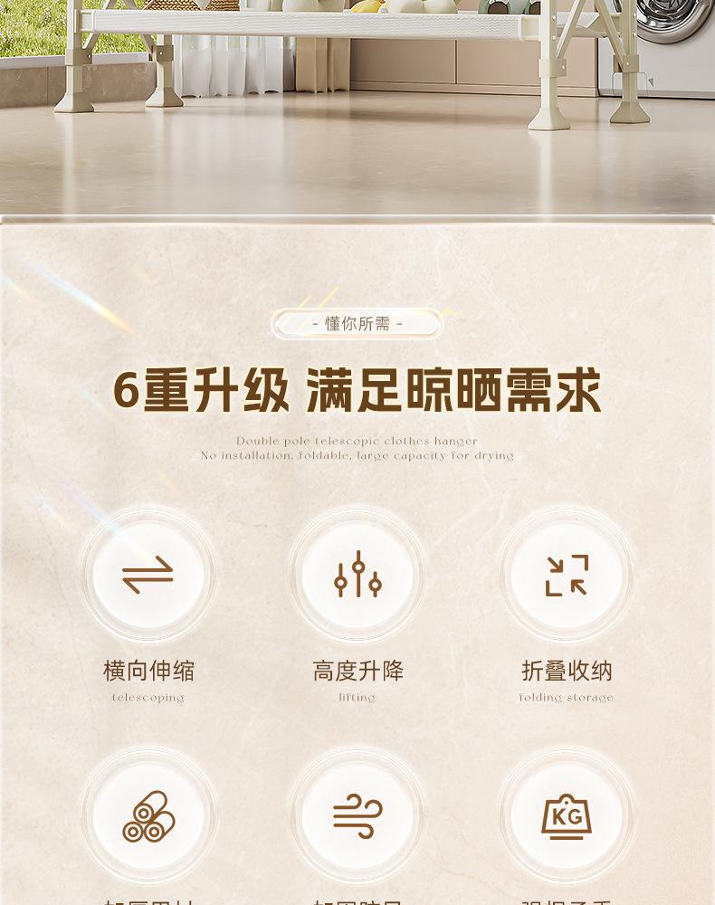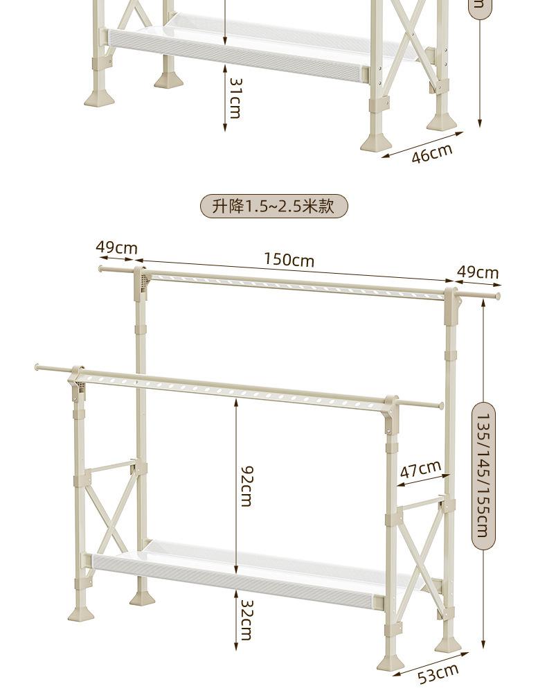 Cream white [1.3- 2.3m telescopic - double row lifting] drying net - free wheels❤Upgrade without installation