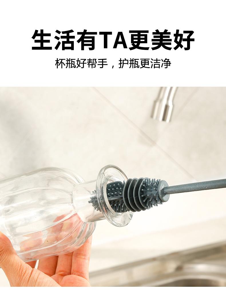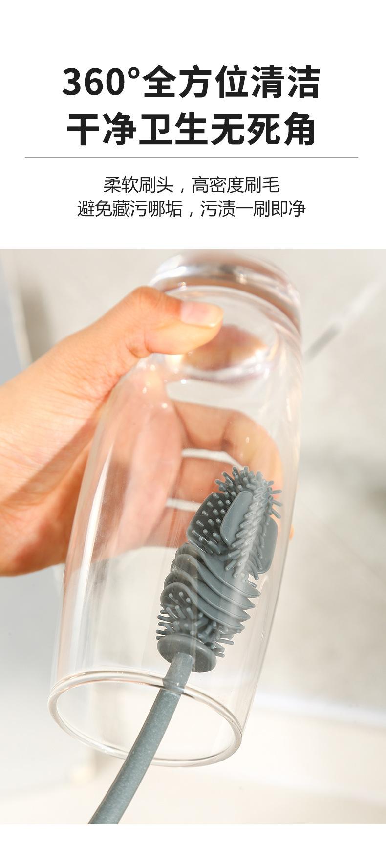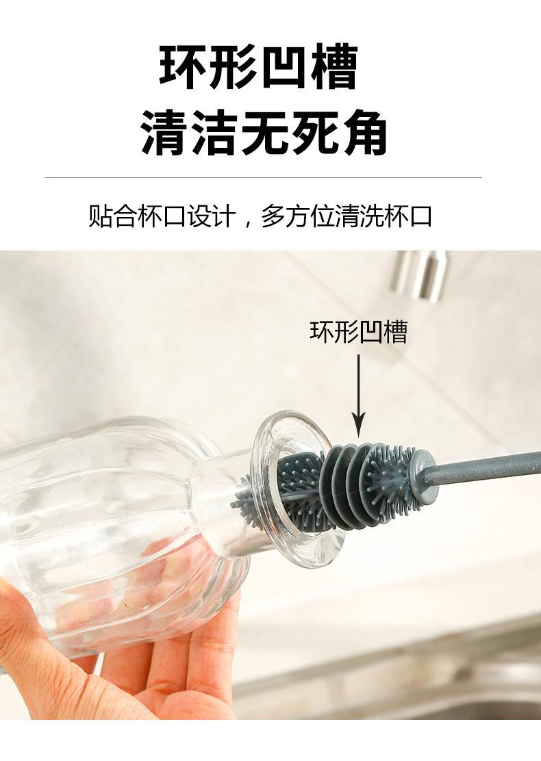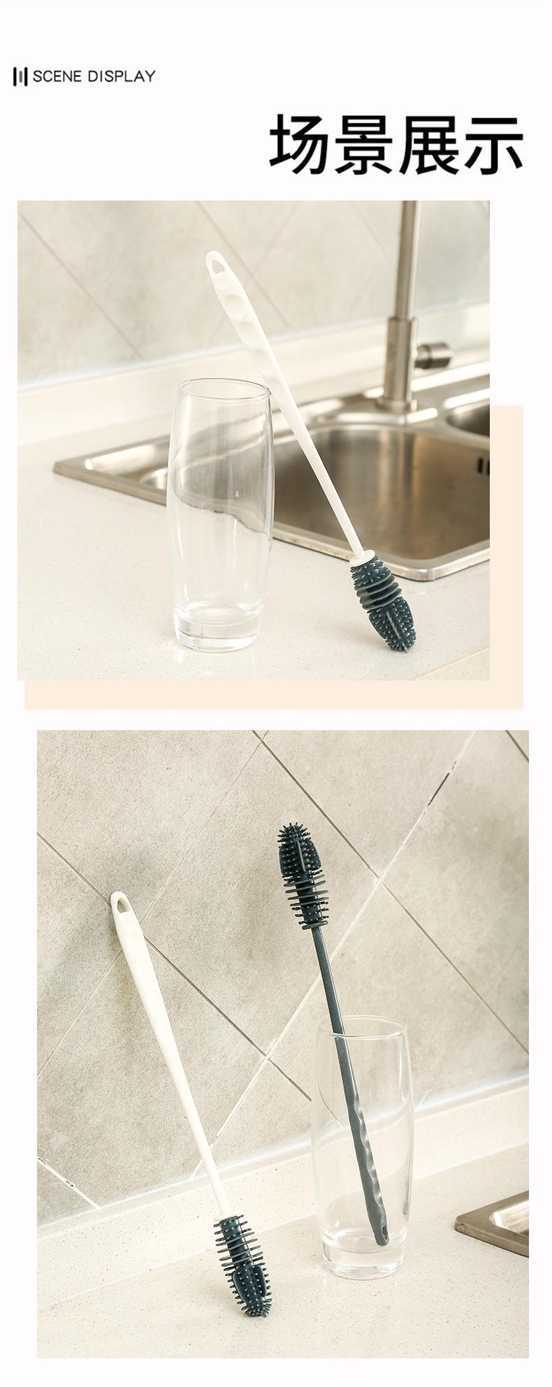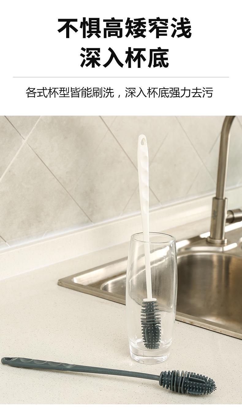 Cepillo de silicona para tazas con mango largo, disponible para el hogar, sin ángulo muerto, de silicona, para limpiar botellas.