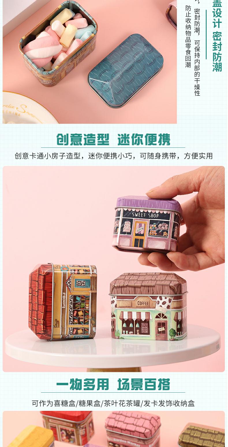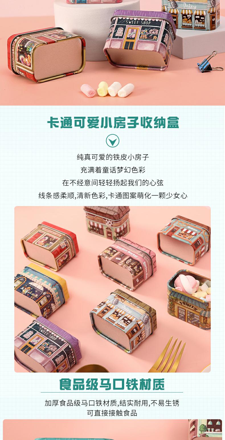 Bonita caja de almacenamiento de subembalaje de bocadillos de dulces para niños de dibujos animados de tamaño pequeño, caja pequeña portátil, mini caja de hierro portátil