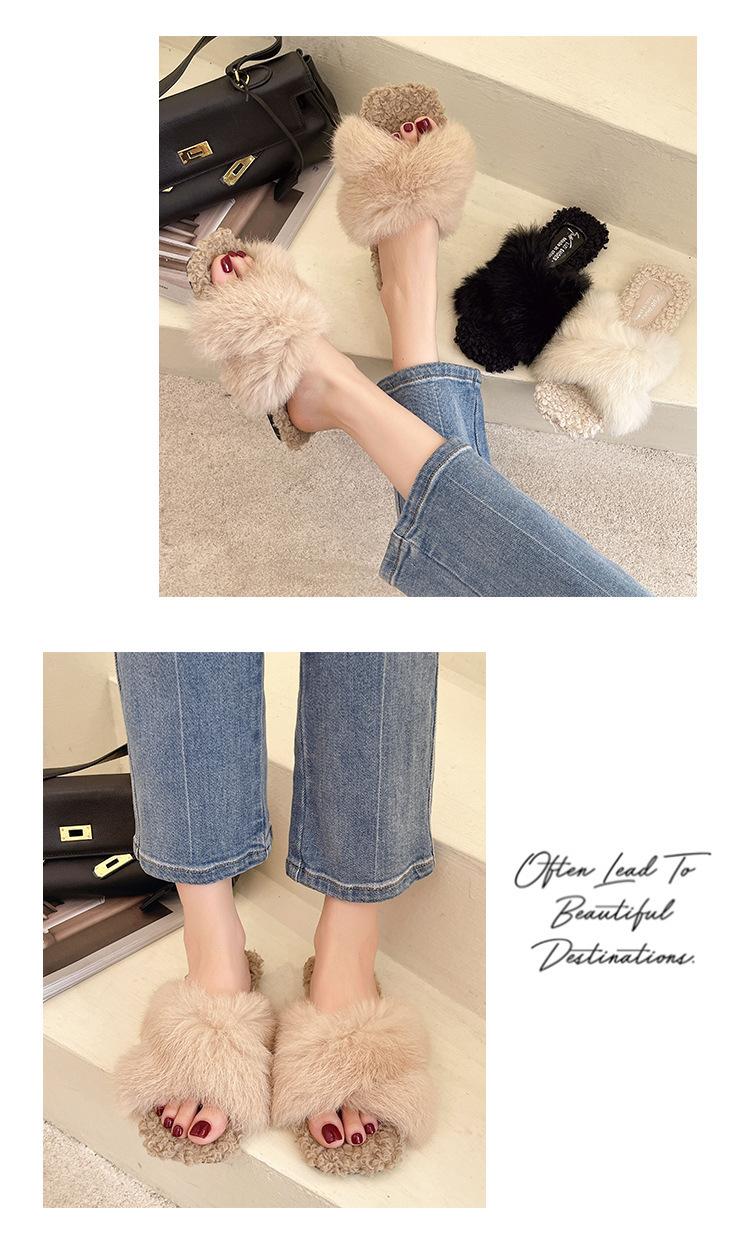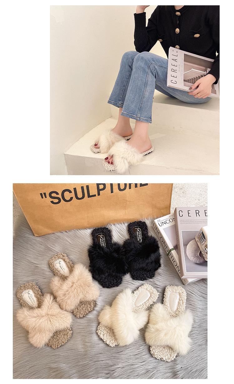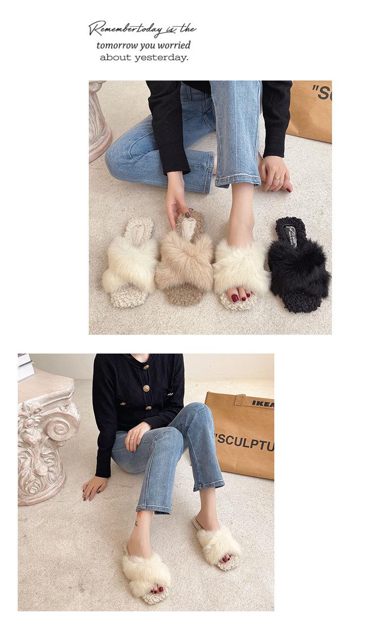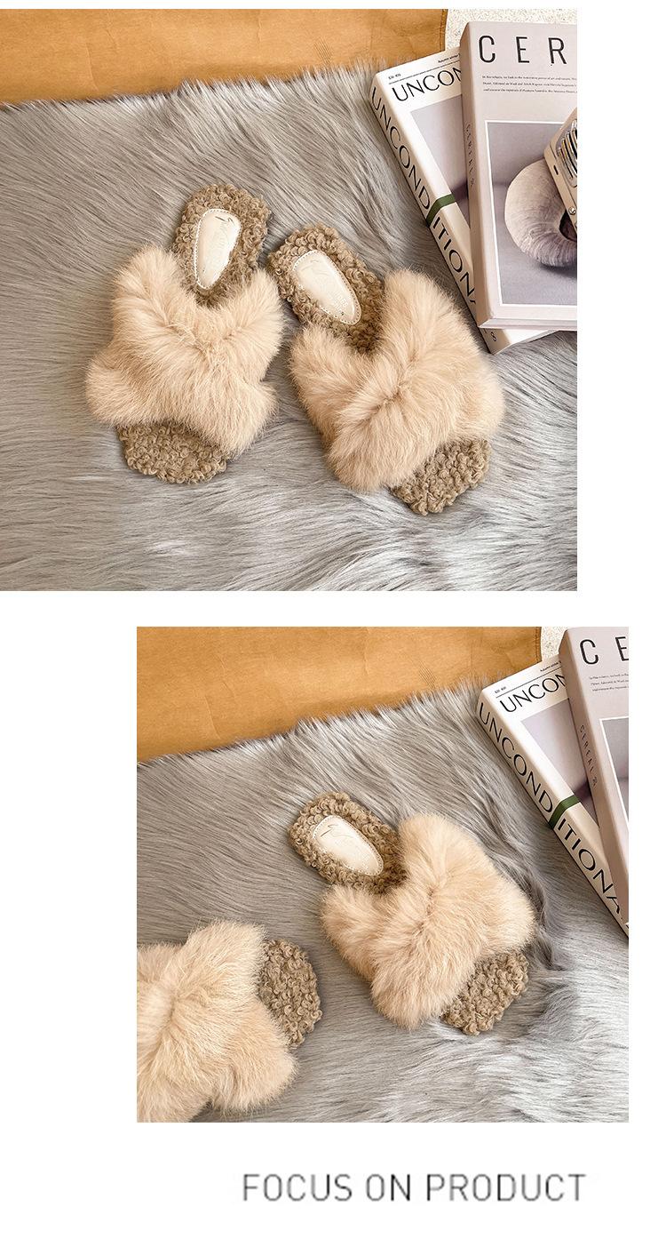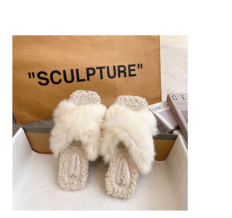 Color Sólido Cálido Moda Casual Slip-On Otoño e Invierno 2023 Nuevo Puntera Cuadrada Zapatillas de Peluche Cruzadas para Mujer Venta al por Mayor Dropshipping