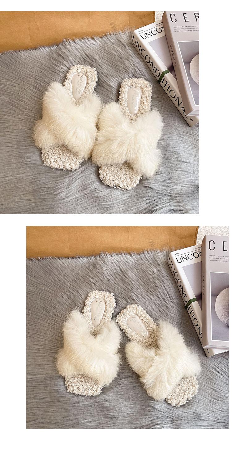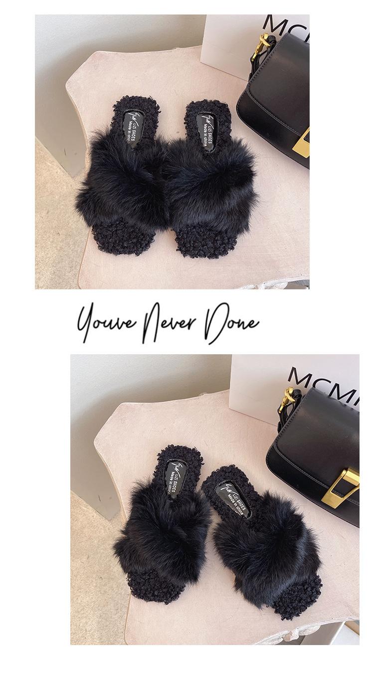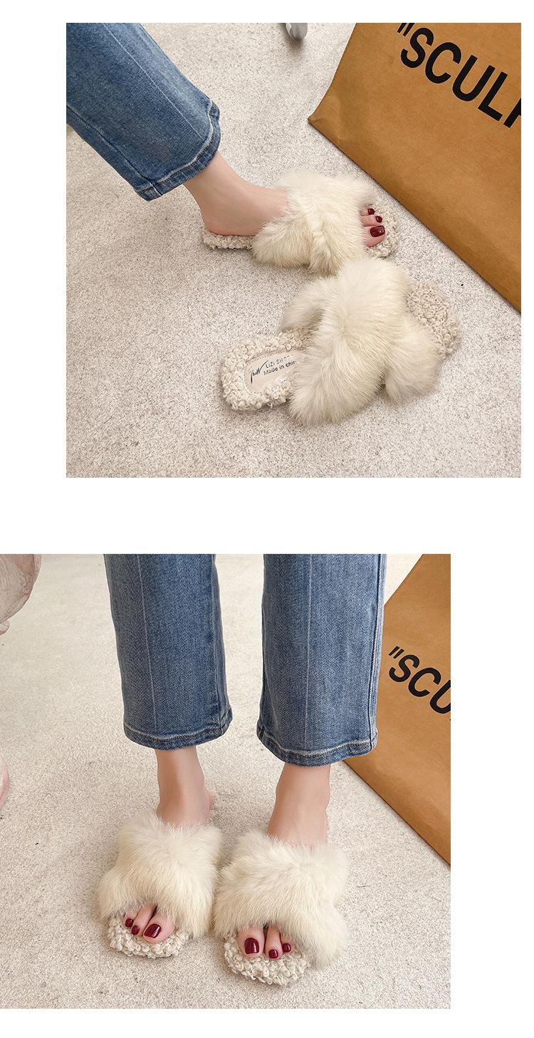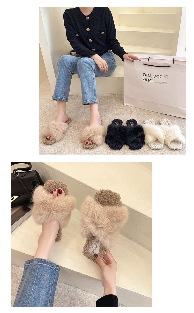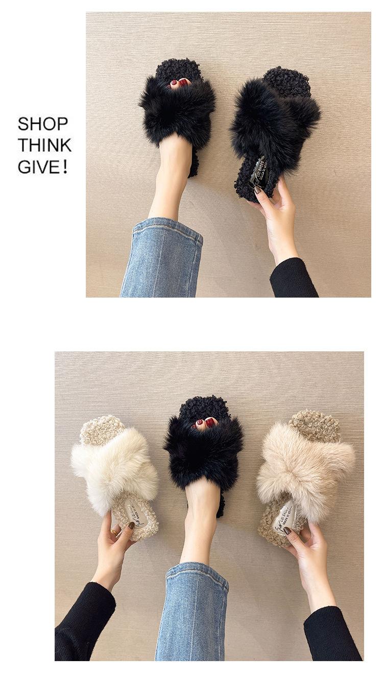 Color Sólido Cálido Moda Casual Slip-On Otoño e Invierno 2023 Nuevo Puntera Cuadrada Zapatillas de Peluche Cruzadas para Mujer Venta al por Mayor Dropshipping