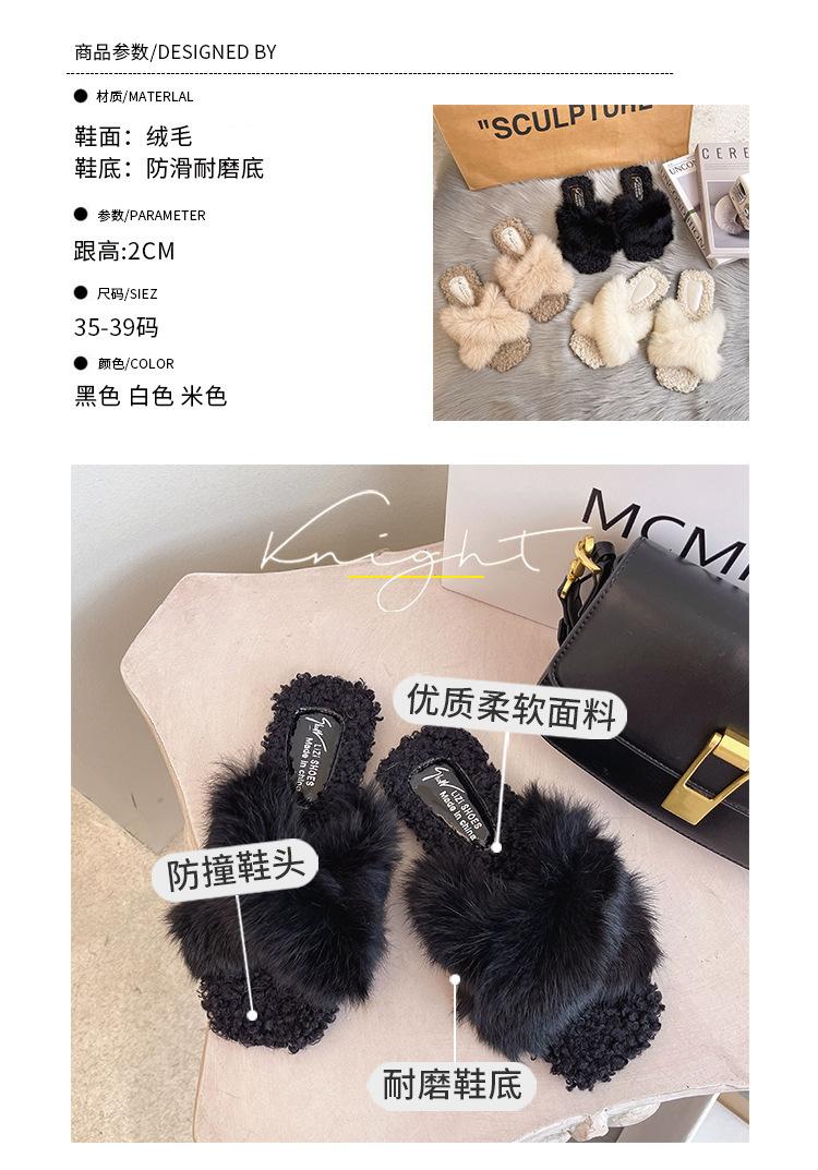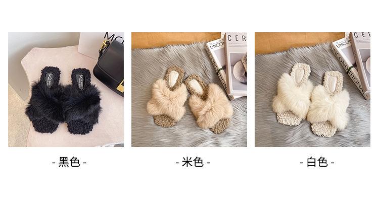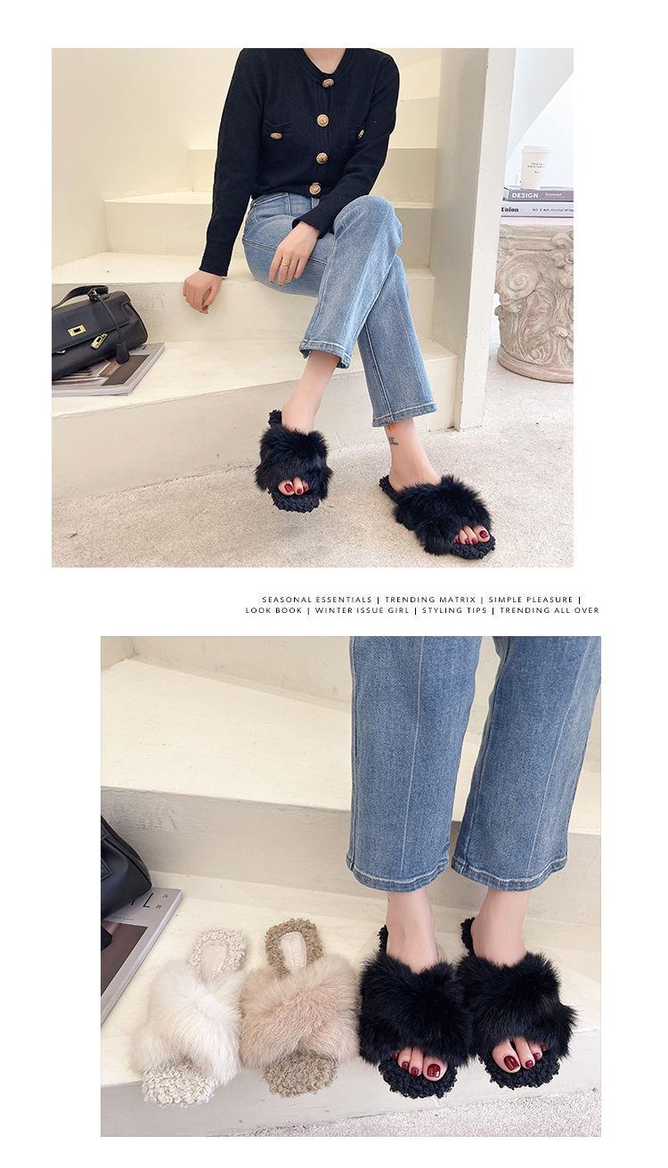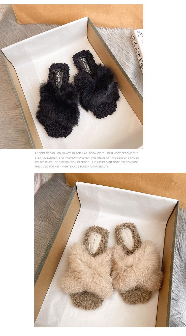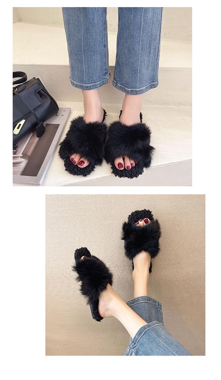 Color Sólido Cálido Moda Casual Slip-On Otoño e Invierno 2023 Nuevo Puntera Cuadrada Zapatillas de Peluche Cruzadas para Mujer Venta al por Mayor Dropshipping