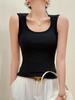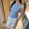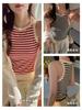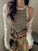 Camisola de rayas blancas y negras para mujer, novedad de verano 2025, prenda exterior adelgazante entallada, sin mangas, con base interior.